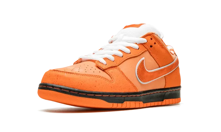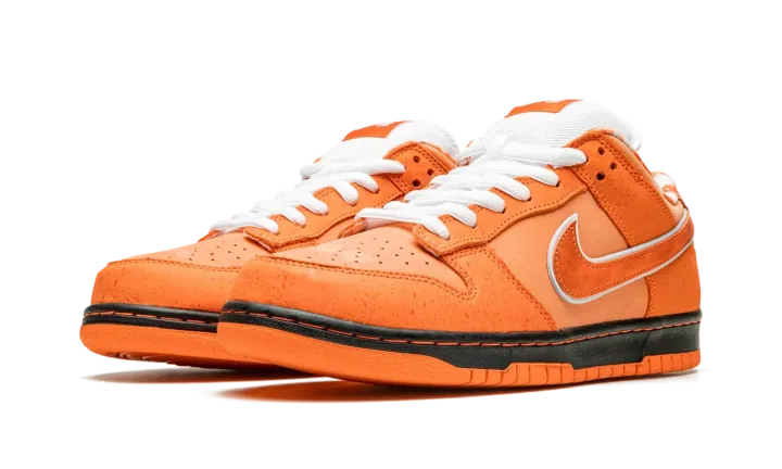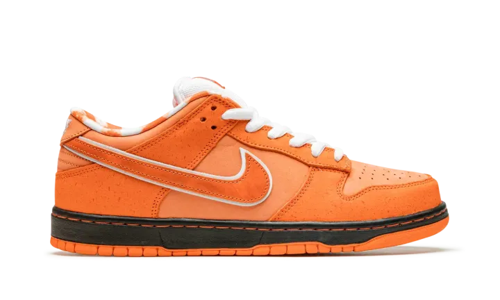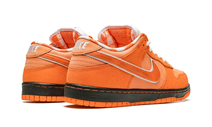 The Concepts x Nike SB Dunk Low "Orange Lobster" is a limited edition collaboration between the Boston based sneaker boutique and Nike SB on the skate shoe that continues its popular "Lobster" series. Introduced by Concepts and Nike SB in 2008, the "Lobster" collection is a nod to Concepts' Boston area roots and its cuisine. The series has featured several iconic SB Dunks, including the "Red Lobster," "Blue Lobster," "Green Lobster," "Yellow Lobster," "Purple Lobster," and now the "Orange Lobster." Similar to previous colorways in the line, the "Orange Lobster" features a tonal design, this time in orange. A black rubber band appears on the forefoot as a reference to the bands that keep a lobster's claws closed. A white and orange picnic blanket inspired checkerboard pattern is found on the interior lining. Release date: December 2, 2022