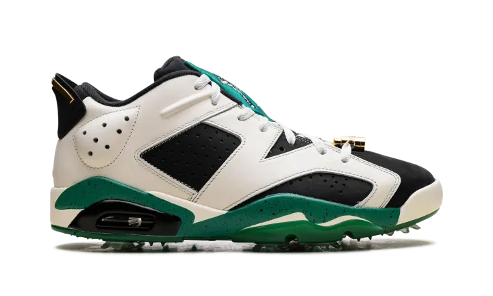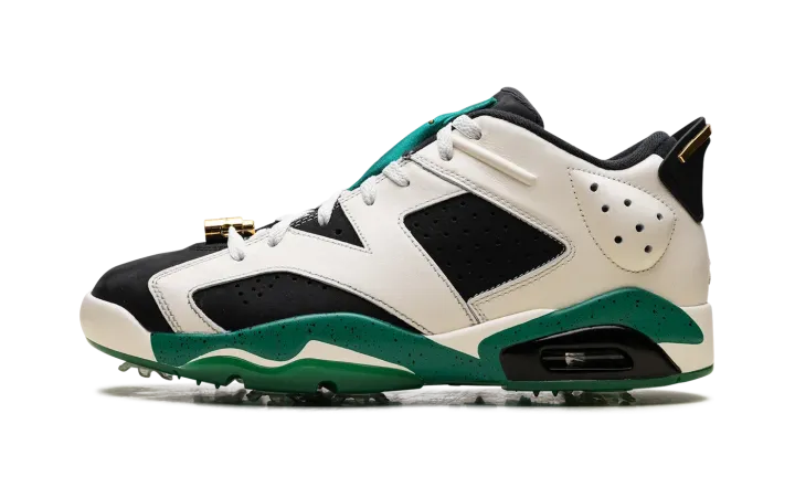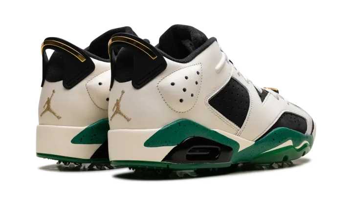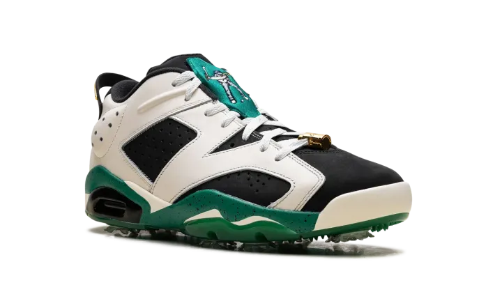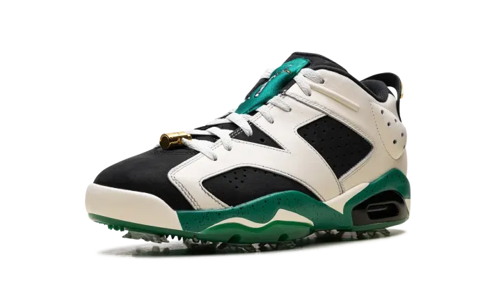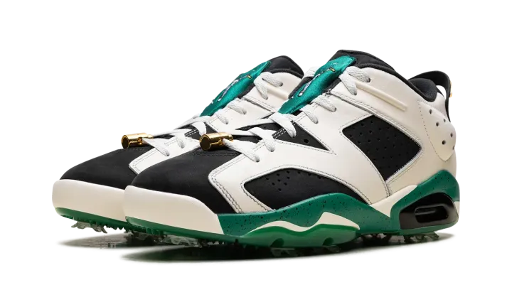 The Eastside Golf x Air Jordan 6 Golf "1961" is a collaboration by the golf brand on a colorway of Michael Jordan's sixth signature shoe that celebrates the year the PGA lifted its ban on non-white players. Much like Eastside Golf's other collaborations with Jordan Brand, the Jordan 6 Golf "1961" champions inclusivity with inspiring slogans like "Change" and "1961" on the outsole. The upper features a black synthetic nubuck base contrasted with cream white leather overlays. Metallic Gold lace locks and Eastside Golf's signature branding on the tongue give the shoe a premium look. Release date: October 1, 2023