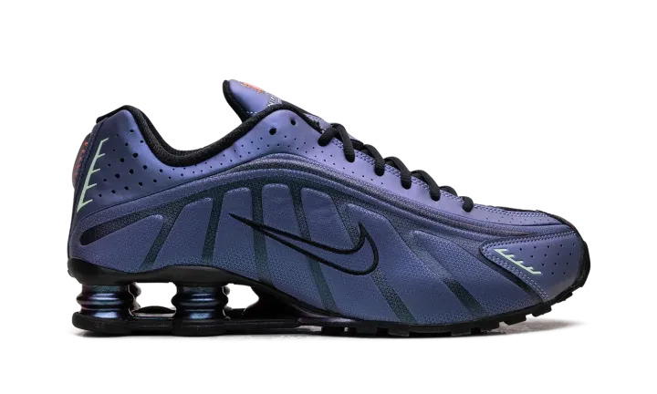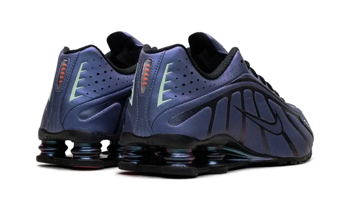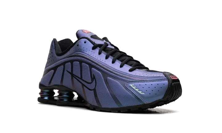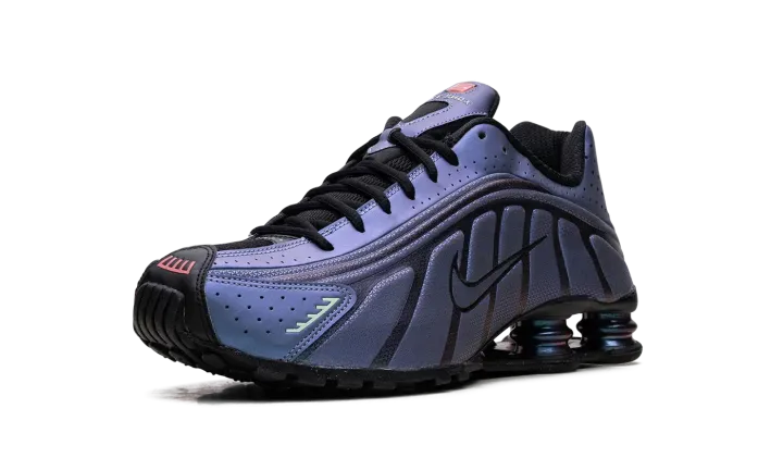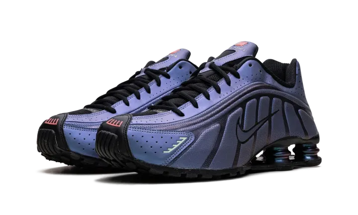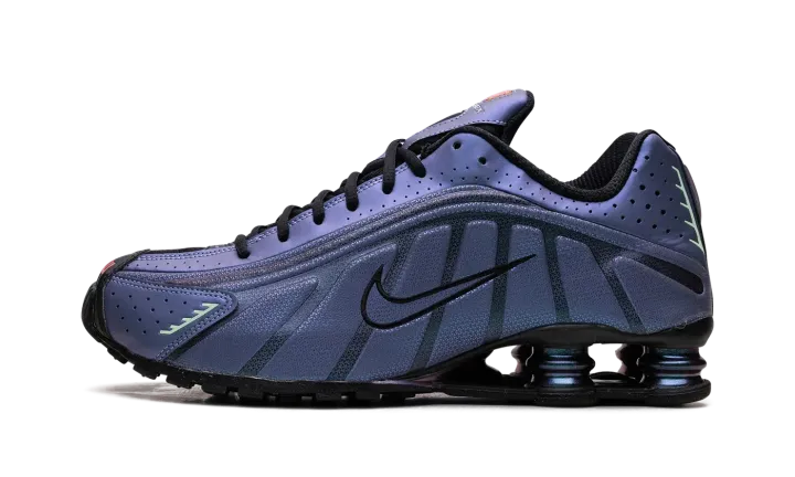 The Nike Shox R4 is a bold icon of early 2000s performance design, famous for its visible, mechanical cushioning. This "Iridescent" edition elevates the futuristic look with a high-shine, color-shifting finish that makes an unapologetic statement in any setting.