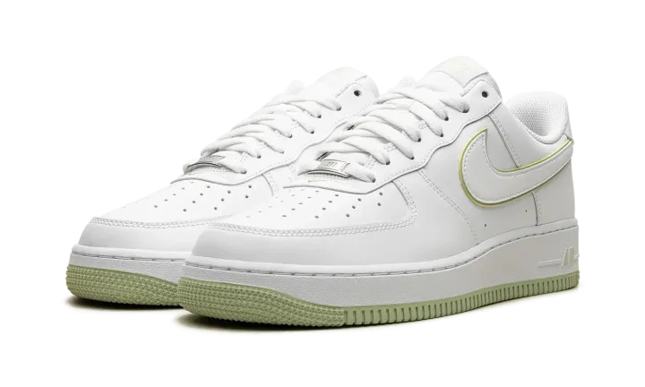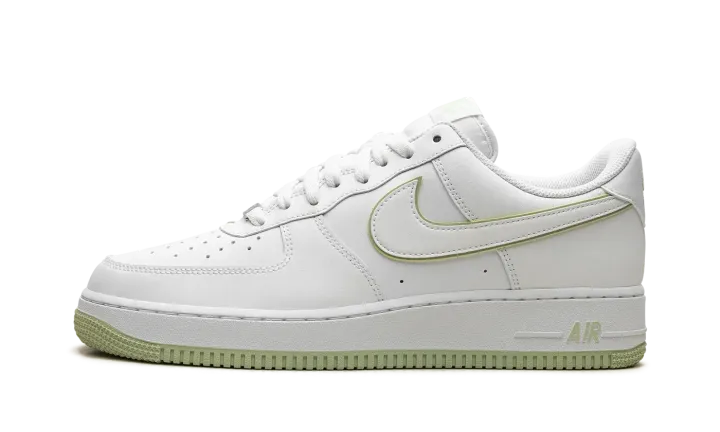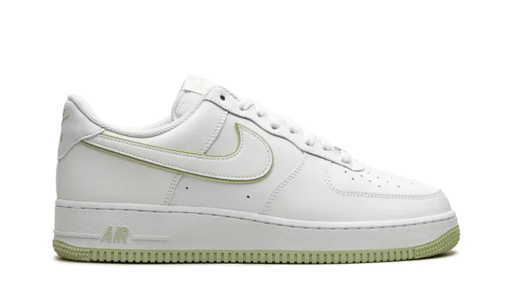 The Nike Air Force 1 Low "Honeydew" is a colorway of the retro basketball sneaker with subtle green accents. The upper features a white leather construction with Honeydew-colored details on the outline of the white leather Swoosh on either side of the shoe. More Honeydew accenting can be found on the "Nike Air" embroidery on the heel, on the "Air" logo on the lateral side of the white rubber midsole, and on the rubber outsole. Classic "Nike Air Force 1" branding can be seen on the tongue tag. Release date: September 16, 2023
