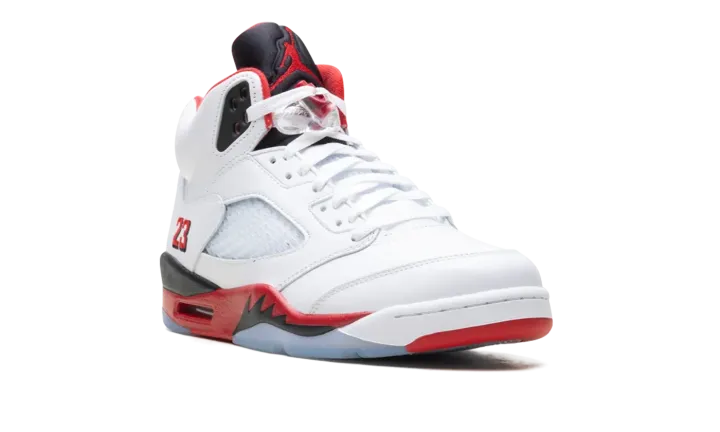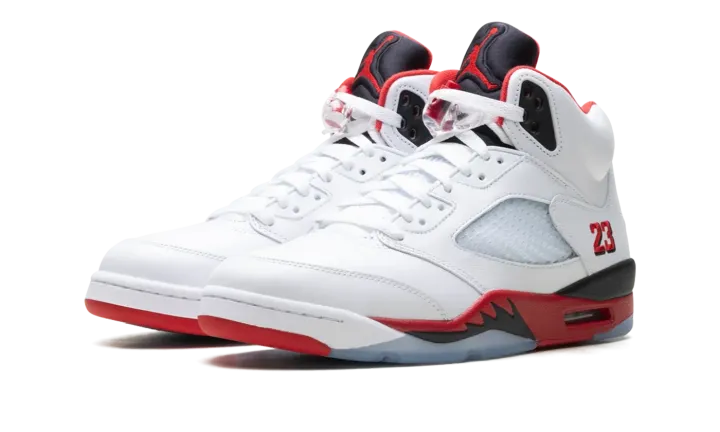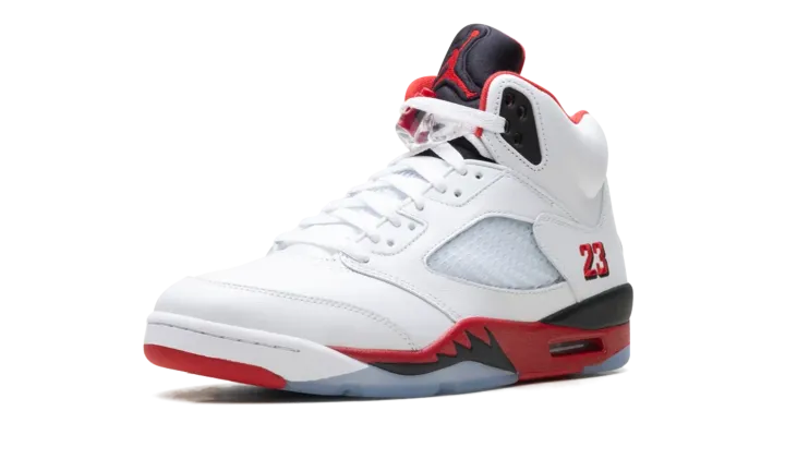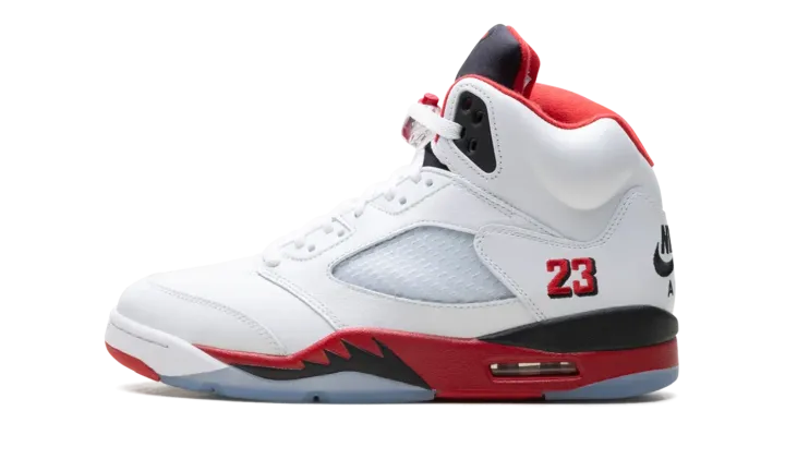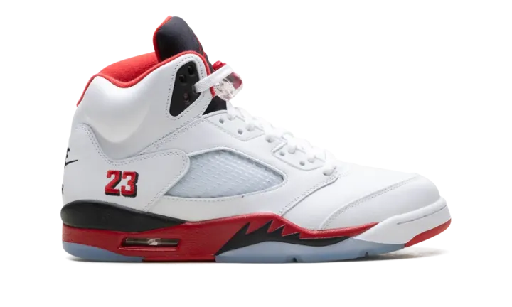 For a sneaker that truly stands out, check out the Air Jordan 5 "Fire Red / Black Tongue." This memorable design showcases its signature details in a clean white and rich red palette, with the legendary black tongue as a focal point. It delivers a supportive fit and a dynamic aesthetic, making it a valuable addition for any collector.