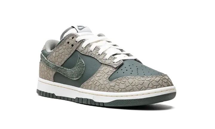 The Nike Dunk Low "Urban Landscape 2.0" is a colorway of the retro basketball shoe with an outdoors-inspired design. The "Urban Landscape 2.0" features scale-like overlays for a turtle-inspired look, which ties into the shoe's nickname. Specifically, the upper has a green leather base and reptilian-like, green textured overlays. A green suede Swoosh appears on either side, while classic "Nike" branding is found on the tongue tag and heel. Underfoot, a white midsole and green outsole and yellow contrast stitching complete the look of the turtle-inspired colorway. Release date: April 1, 2024