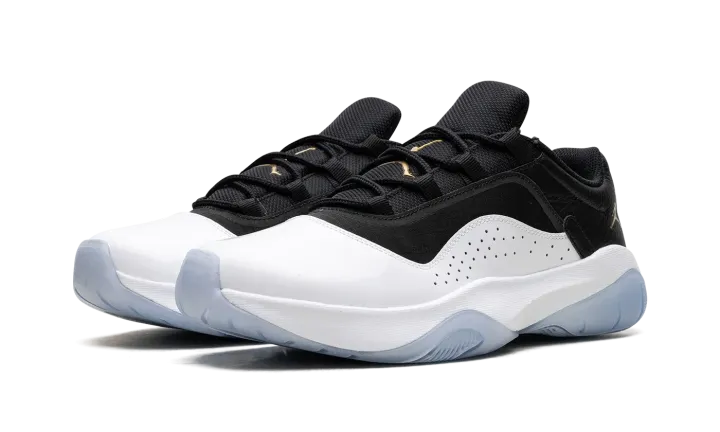 Discover the luxury and comfort of the Air Jordan Retro 11 CMFT Low "Black White Gold" sneakers. This refined casual take on the classic Air Jordan 11 Low features an elegant black upper with shimmering gold accents, creating a striking contrast. The shoe is engineered for ultimate comfort, incorporating plush cushioning and a breathable design perfect for all-day wear. It's the ideal choice for those who want iconic style and exceptional comfort in one standout package.