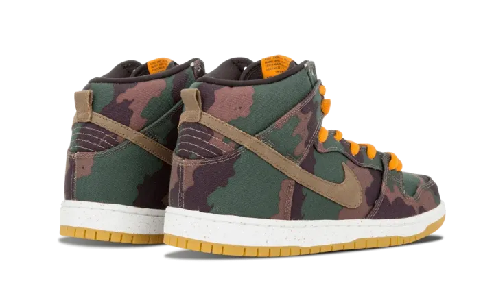 A special collaborative release by Berkeley, California's 510 skate shop, this rugged look for the Dunk High features a camouflage upper with hunter orange accents completed by a gum rubber outsole.
