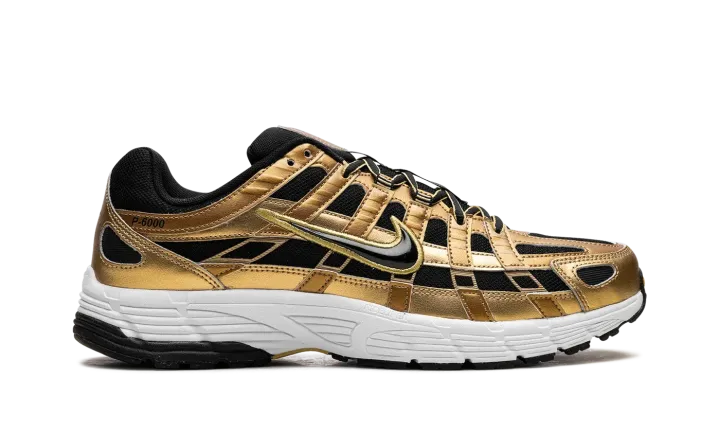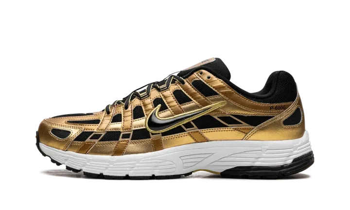 The Nike P-6000 'Infinite Gold' is a vibrant mash-up of classic Pegasus runners, taking the complex, layered look of the early 2000s to a luxurious, metallic extreme. This shoe delivers head-turning style combined with modern comfort and support.