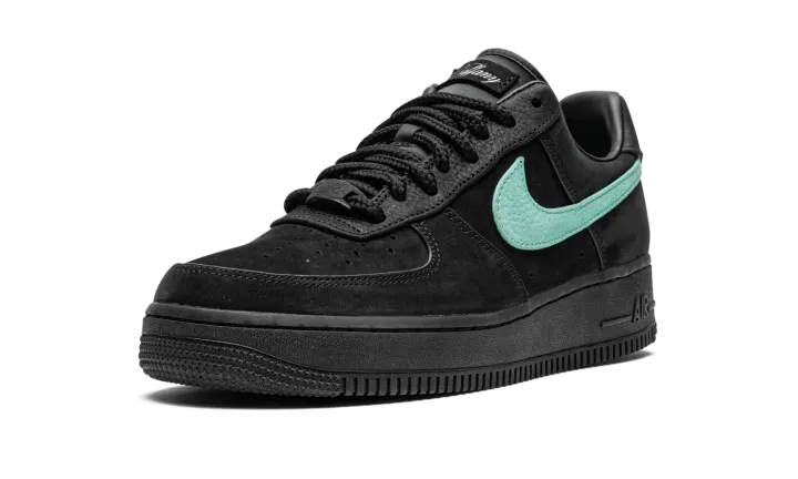 The Tiffany and Co. x Nike Air Force 1 Low is a highly desirable collaboration between the storied luxury jewelry brand and Nike on the classic sneaker. While Nike SB and Diamond Supply Co. honored Tiffany with their SB Dunk Low "Tiffany" in 2005, this shoe marks the first-ever official collaboration between Tiffany and Co. and Nike. The "1837" (a reference to Tiffany's founding year) champions a high end design with the New York based brand's signature "Tiffany" colored accenting appearing on the leather Swoosh. A black suede upper allows the aforementioned branding to take center stage. "Tiffany" script is found on the tongue tag. Tonal "Nike Air" branding is embroidered on the back of the collar. Below that, an engraved Metallic Silver Tiffany badge appears on the heel, completing the shoe's opulent look. Release date: March 7, 2023