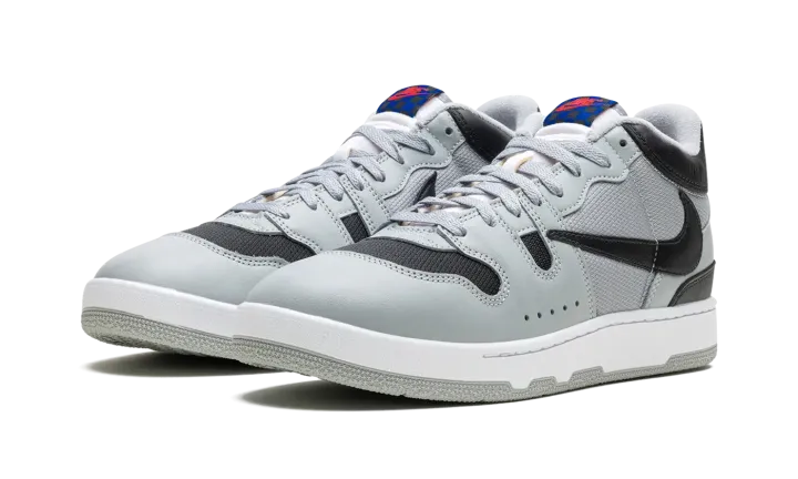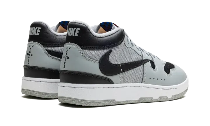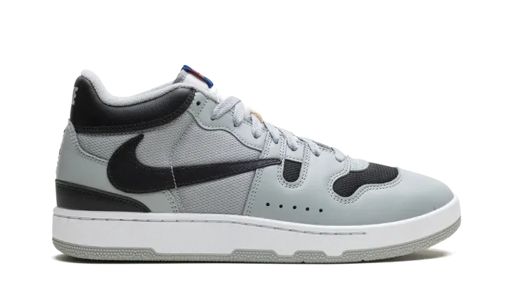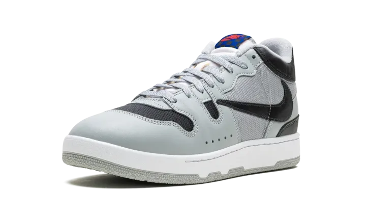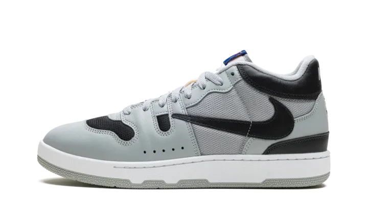The Travis Scott x Nike Mac Attack is a collaboration by the acclaimed hip-hop artist on the classic tennis and lifestyle sneaker. Originally designed for tennis star John McEnroe in the mid-1980s, the Mac Attack was one of the brand's first tennis sneakers to achieve mainstream success upon its debut. The old school shoe was brought back by Nike in 2023 for the first time as a retro release. Here, Travis Scott adds his signature design aesthetic to the silhouette, giving it a refreshingly modern look. The shoe has a Light Smoke Grey mesh base on the sides with tonal leather overlays. The toe is finished in black mesh to match the color of the backwards leather Swoosh. A black "Cactus Jack" logo is embroidered on the heel below the grey "Nike" branding on the back of the black leather collar. The shoe's signature checkerboard patterned logo tag appears on the tongue.