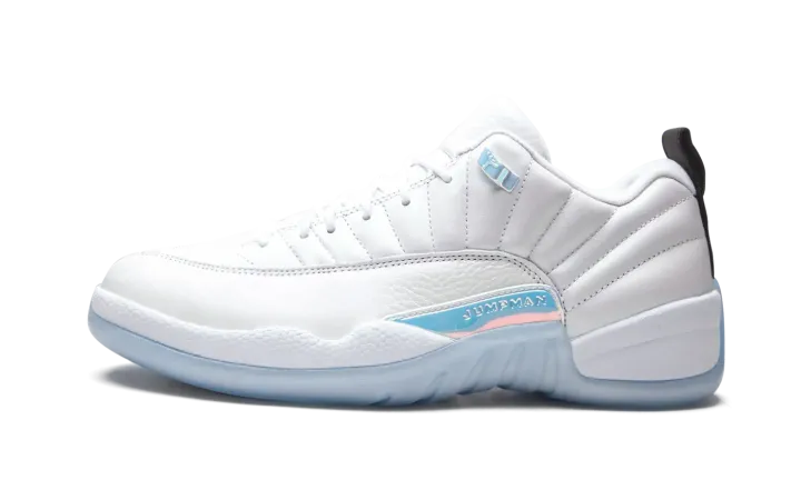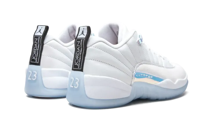 White leather/rubber Air Jordan 12 Low sneakers from JORDAN featuring contrasting panel detail, round toe, front lace-up fastening, pull-tab at the heel and rubber sole. These styles are supplied by a premium sneaker marketplace. Stocking only the most sought-after footwear, they source and curate some of the most hard to find sneakers from around the world..
