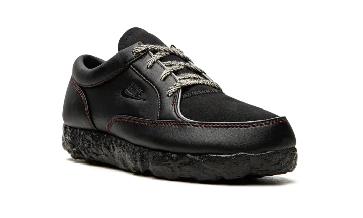The Nike Be-Do-Win "Black" is a modern remake of the lifestyle design from Nike's early '80s footwear category. Formerly known as the Nike Bedouin, the casual shoe was renamed the Be-Do-Win that combines the phrases: "Be conscious of climate change, Do take action against climate change, and Win the battle to prevent climate change." Design components include a black leather upper with red contrast stitching along each panel. Reflective detailing borders the moc toe and a tonal "Nike" with a Swoosh logo is embroidered underneath the eyelets. Multicolor "Be-Do-Win" branding is embroidered on the heel. The shoe rides on a lightweight cushioned midsole. Release date: November 4, 2021