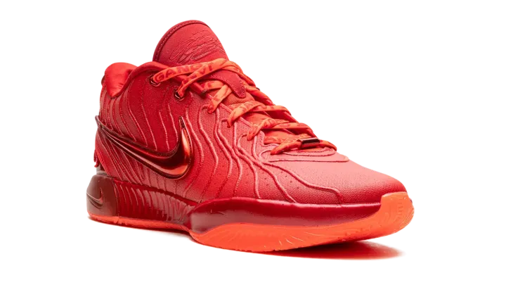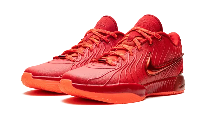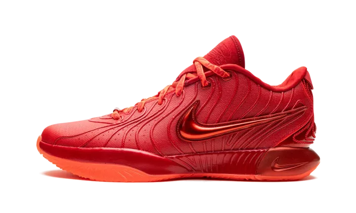 The Nike LeBron 21 "James Gang" is a bold, all-red colorway of LeBron James's twenty-first signature shoe with Nike Basketball. Inspired by LeBron's family, the "James Gang" theme has appeared on several Nike LeBron models, including on the Nike LeBron 21 at hand. Here, the colorway features a Gym Red appearance with visible red Flywire cables. An oversized jelly-like Gym Red Swoosh appears on both sides. "James Gang" is printed on the red laces, while LeBron's signature can be found on the tongue. A semi-translucent red rubber outsole completes the shoe's monochromatic red look. Release date: May 3, 2024