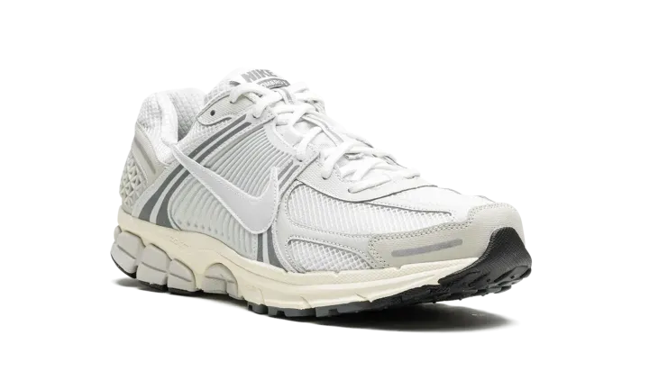 The Nike Zoom Vomero 5 "Platinum Tint" is a grey-based colorway of the classic performance running and lifestyle shoe. The Zoom Vomero 5 debuted in 2010 and was later reintroduced as part of the Y2K sneaker trend. On the "Platinum Tint" colorway, the upper features a breathable and lightweight mesh construction in a versatile grey, or Platinum Tint hue. The plastic lace "cage" and heel counter also appear in shades of grey. A white leather Swoosh appears on the sides, while "Nike Vomero 5" branding can be found on the tongue. Zoom Air cushioning within the Cushlon foam midsole provides all-day comfort. Release date: January 10, 2024