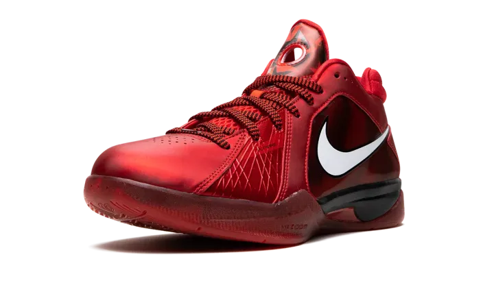 The Nike KD 3 Retro "All-Star" is the modern re-release of Kevin Durant's third signature shoe in the "All-Star" colorway he debuted at the 2011 NBA All-Star Game in 2011. An exact one-to-one replica of the original Nike KD 3 "All-Star," the 2023 retro of the colorway features a red-based design with iridescent quarter panels and Nike's Flywire technology on the forefoot. A white Swoosh is found on the sides of the shoe and Durant's signature branding appears on the tongue. Unique "KD35" branding inspired by video game controllers is located on the heel. Release date: February 10, 2023