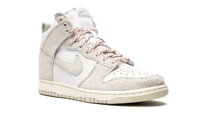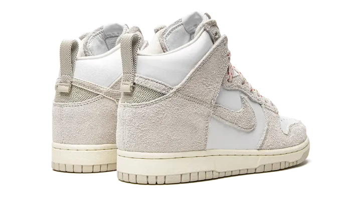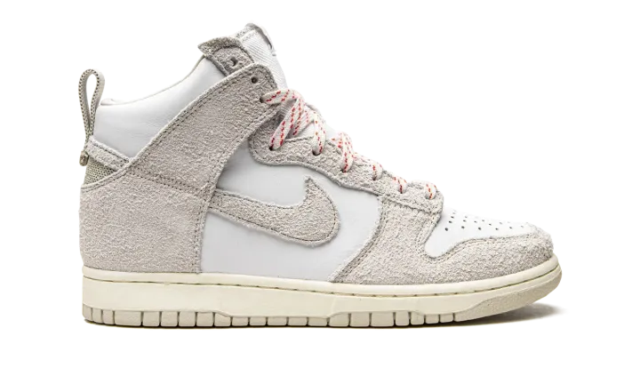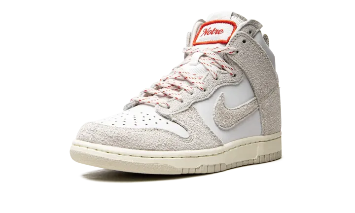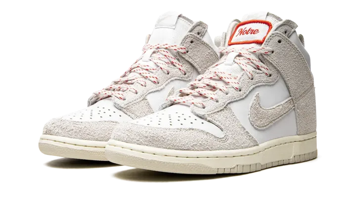 The Notre x Nike Dunk High "Light Orewood Brown" is a January 2021 collaboration between the Chicago retailer and Nike on the all-time classic high-top shoe. One of two workwear inspired colorways of the Dunk High imagined by Notre, the "Light Orewood Brown" was released exclusively at Notre. The brand's first-ever collaboration with Nike includes Light Orewood Brown hairy suede overlays on the forefoot, eyelets, collar, and heel. Sail, or cream colored, leather appears on the perforated toe and on the mid-panel and collar for light contrast. The same hairy suede material also dots the Swoosh branding located on each lateral side. On the medial sides, the Swooshes feature a modified design with Notre's "handshake" motif. Speckled shoelaces appear on top of the white mesh tongue with a workwear-inspired "Notre" name tag patch on the left shoe. A pull tab on the back of the shoe assists with easy on-off and a retro-looking cream midsole pulls the workwear aesthetic together. Release date: January 23, 2021.