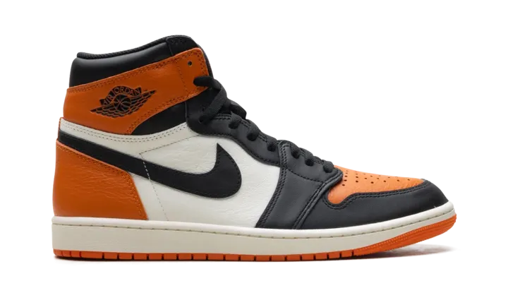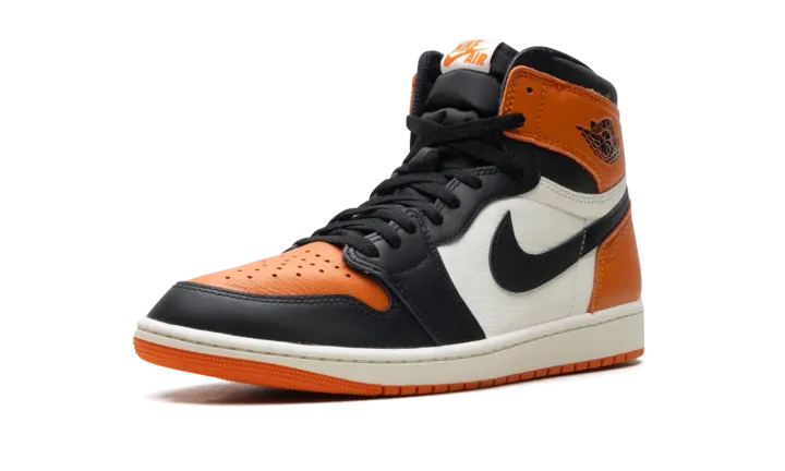 Make a bold statement with the striking look of the Air Jordan 1 High OG "Shattered Backboard." The vibrant Starfish orange, black, and sail color blocking, combined with premium tumbled leather, creates an instantly recognizable and highly coveted aesthetic. This legendary colorway brings back impactful style to the timeless Air Jordan 1 silhouette.
