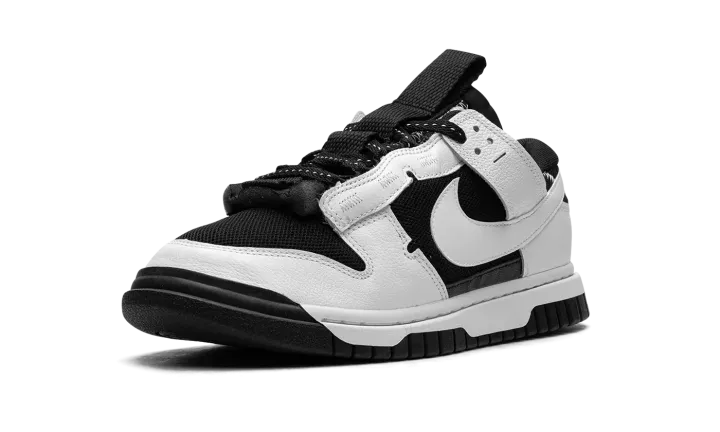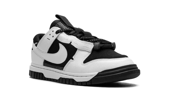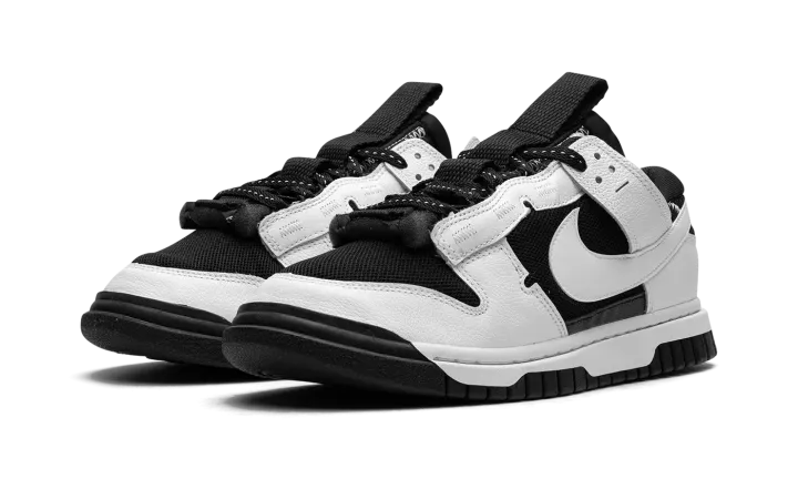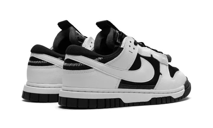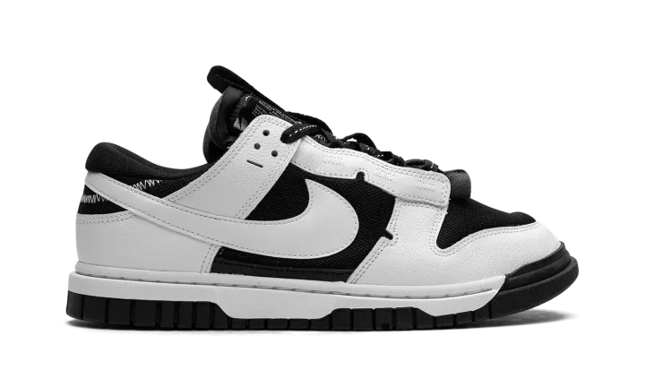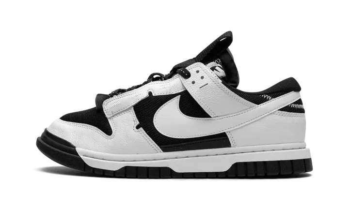 The Nike Dunk Low Remastered "Reverse Panda" is a contemporary version of the retro basketball shoe with a unique look. On the "Reverse Panda" Dunk Low, Nike equips the Dunk Low Remastered with a black mesh upper contrasted with white leather overlays a white leather Swoosh. A padded black mesh tongue and nylon laces with white contrast trim accent the top of the shoe. Underfoot, the white rubber midsole and black rubber outsole complete the look.
