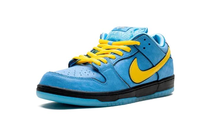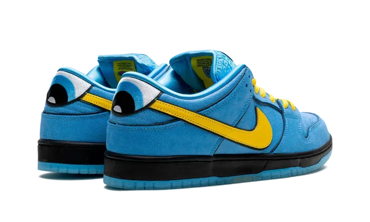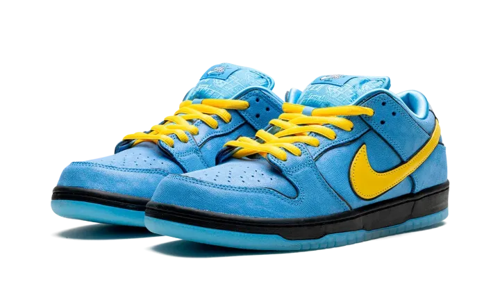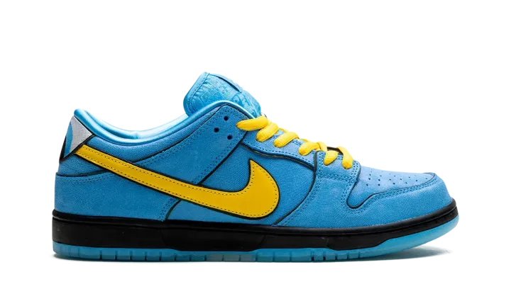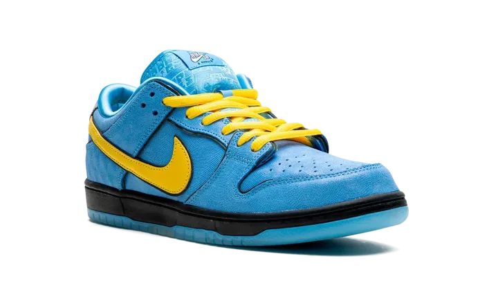 The Powerpuff Girls x Nike SB Dunk Low "Bubbles" is a collaboration by the animated cartoon series and Nike SB that honors one of the show's main characters. Yet another unique collaboration by Nike SB for the SB Dunk, the Powerpuff Girls sneaker honors Bubbles to the fullest by featuring the cartoon character's appearance with a shimmering blue design. Yellow laces and Swoosh branding tie into the character's look. The same can be said for the Bubbles-inspired eyes that are embroidered on the back of each shoe. Release date: December 14, 2023