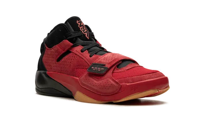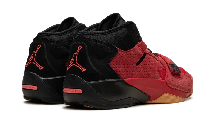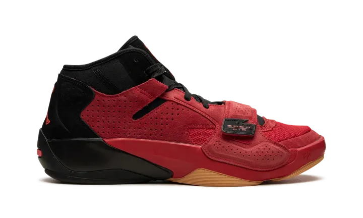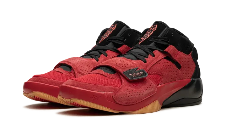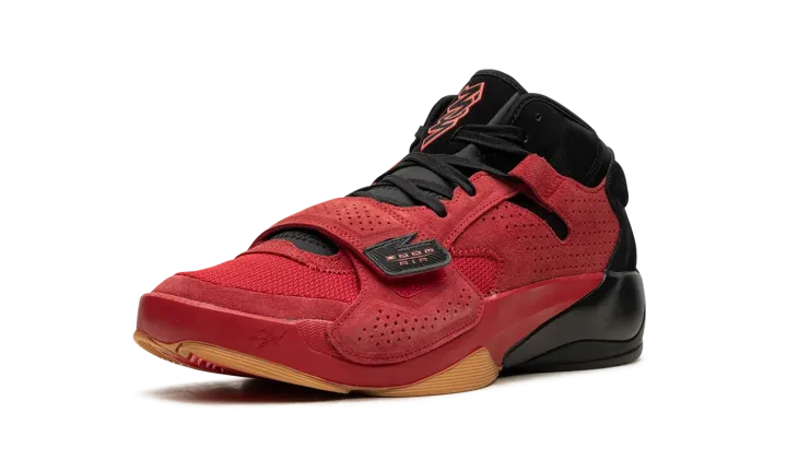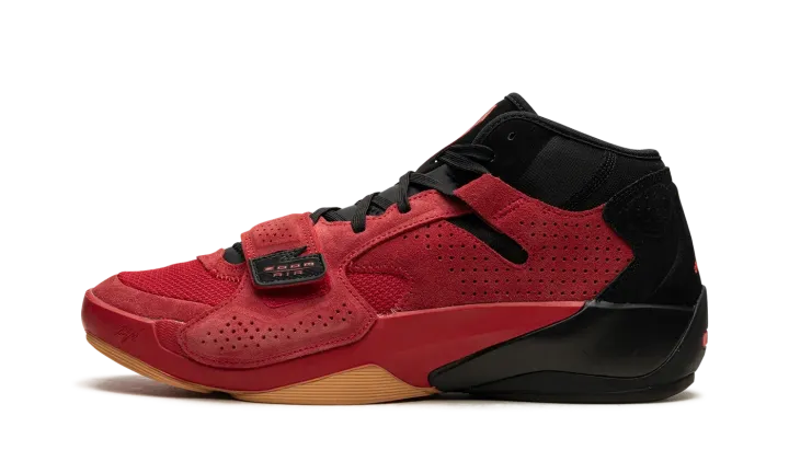 The Jordan Zion 2 "Raging Bull" is a colorway of basketball star Zion Williamson's second signature shoe with Jordan Brand inspired by a classic Air Jordan shoe. The sneaker we're referring to is the Air Jordan 5 "Raging Bull" that was originally released in 2009 as part of the "Defining Moments Pack." That sneaker, like Zion's Jordan Zion 2, features a red suede construction. The Jordan Zion 2 combines other colors and materials, though, for an update on the popular "Raging Bull" theme. More specifically, the shoe has a University Red mesh toe contrasted with red suede overlays throughout the design. Both the collar and heel have a combination of black suede and mesh. A red Jumpman is embroidered on the heel. "Zoom Air" branding is found on the red suede midfoot strap. Zoom Air technology is placed in the forefoot of the midsole.