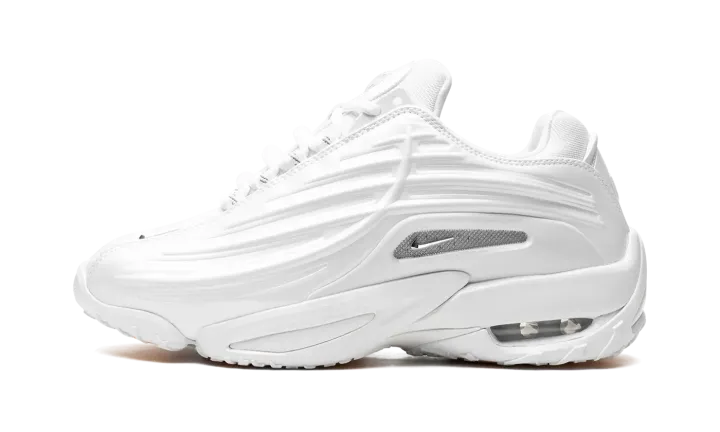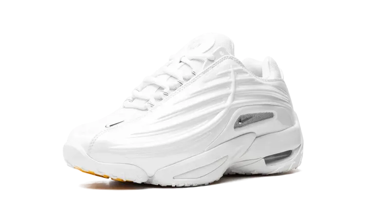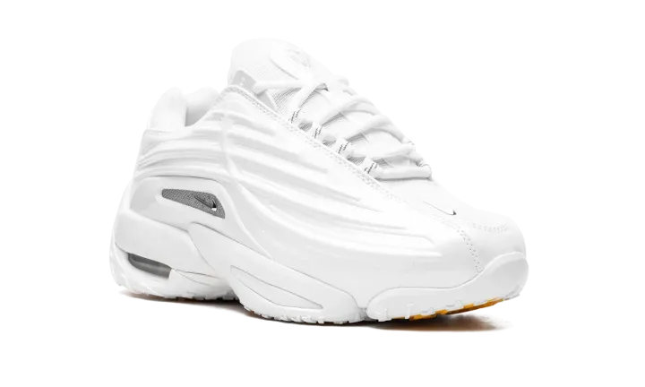 The NOCTA x Nike Hot Step 2 "White" is an all-white colorway of the second version of Drake's signature shoe with Nike. The Nike Hot Step was Drake's first-ever collaboration with Nike following several successful projects with Jordan Brand. In 2024, the Nike Hot Step 2 was released as a follow-up to the first collaboration. The "White" has White mesh on the toe, tongue, and heel and tonal synthetic, concave overlays on the sides. A chrome midfoot panel breaks up the shoe's monochromatic orange appearance, while various Swoosh logos appear throughout the design. "NOCTA" branding is seen on the tongue. An Air cushioning unit is secured in the heel of the midsole. Release date: May 9, 2024