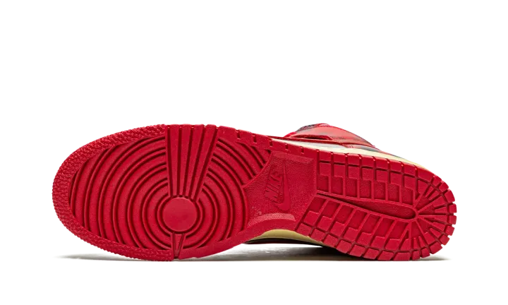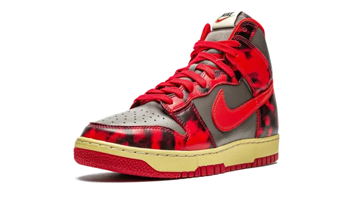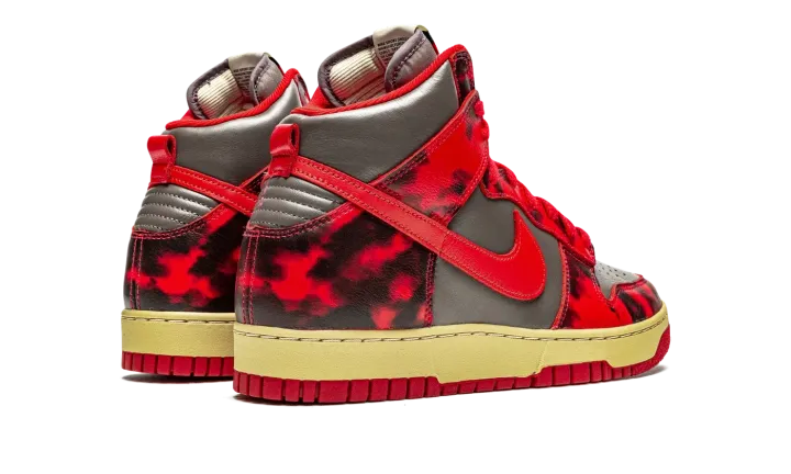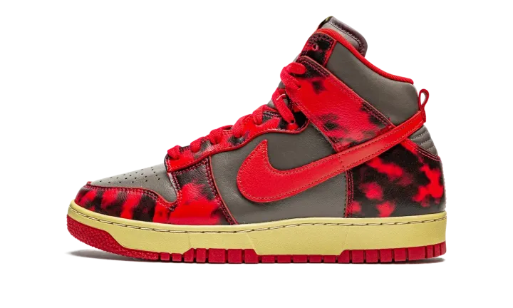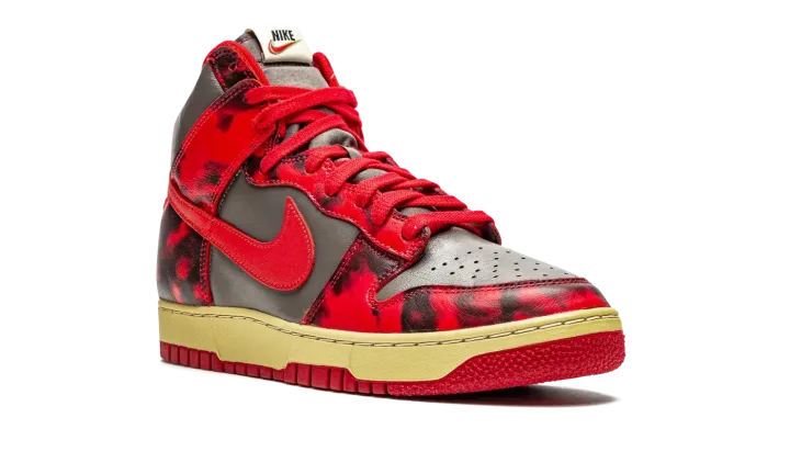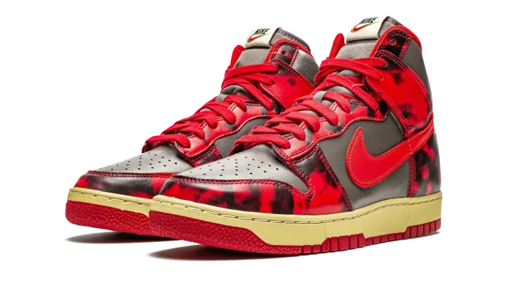 Dunk High 1985 SP "Chile Red" sneakers from NIKE featuring red, grey, signature Swoosh logo detail, round toe, perforated detailing, front lace-up fastening, logo patch at the tongue, ankle-length, branded insole and rubber sole. These styles are supplied by a premium sneaker marketplace. Stocking only the most sought-after footwear, they source and curate some of the most hard to find sneakers from around the world..