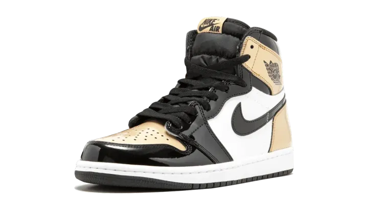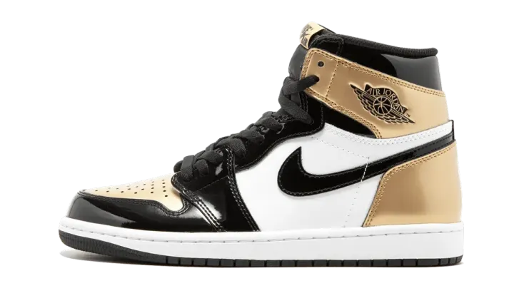 Not to be confused with the "Gold Top Three" colorway, the Air Jordan 1 High OG released in a second white, black, and gold patent leather combination in 2018 for the NBA All-Star Weekend festivities. The "Gold Toe" Air Jordan 1 features—you guessed it—gold color blocking on the toe panels, while a "Black Toe"-style colorblock is found on each lateral side and a "Bred"-style block is on each medial side. You just can't go wrong with a gold pair of Air Jordan 1s. The Air Jordan 1 Gold Toe is a must-have for any fan of the iconic silhouette.