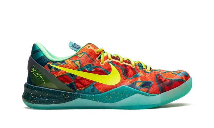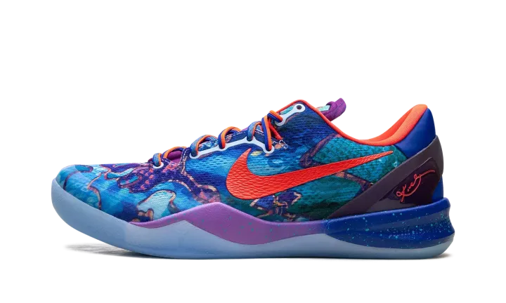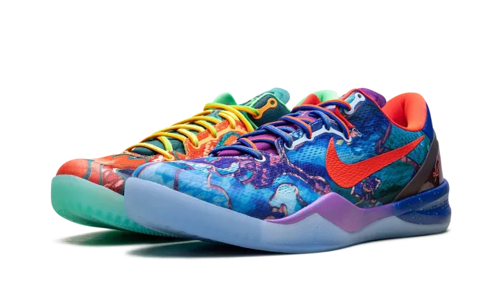 "A bold fusion of iconic colorways, the Nike Kobe 8 Protro "What The" celebrates the Mamba legacy with unmatched style. The "What The" colorway brings together some of the most renowned Kobe 8 colorways in the Los Angeles Lakers star's legacy. This sneaker delivers top-tier performance and eye-catching appeal. "