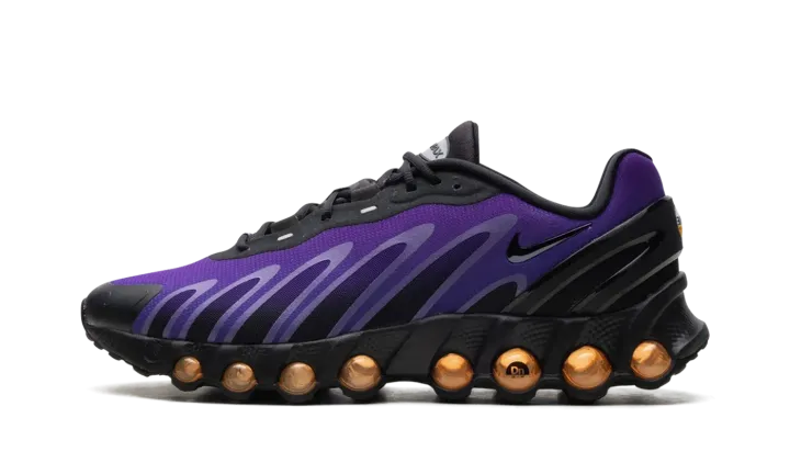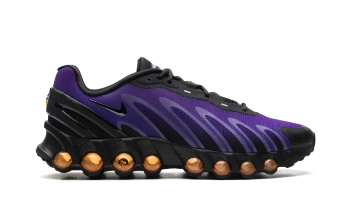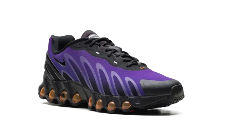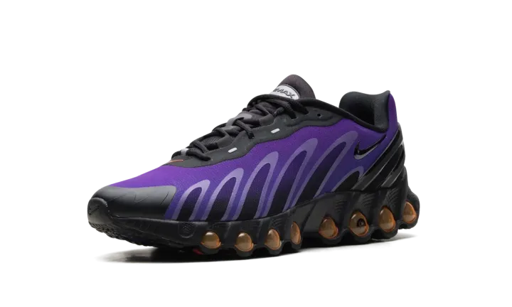 Behold the next generation of Air Max. The Nike Air Max Dn8 takes Nike's revolutionary Dynamic Air system and condenses it into a sleek, low-profile package. This dynamic edition is fueled by an electric mix of purples and oranges, delivering an unreal experience of motion with every step.