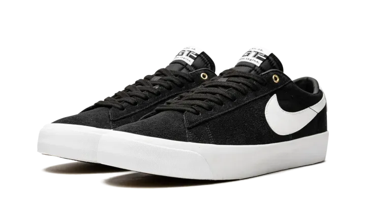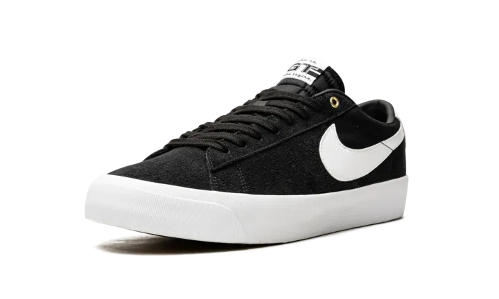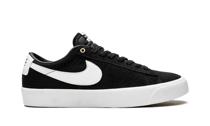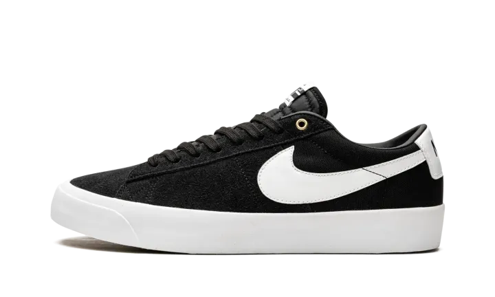 Black suede Zoom Blazer low-top sneakers from NIKE featuring logo patch at the tongue, branded heel counter, signature Swoosh logo detail, round toe and flat rubber sole. These styles are supplied by a premium sneaker marketplace. Stocking only the most sought-after footwear, they source and curate some of the most hard to find sneakers from around the world..