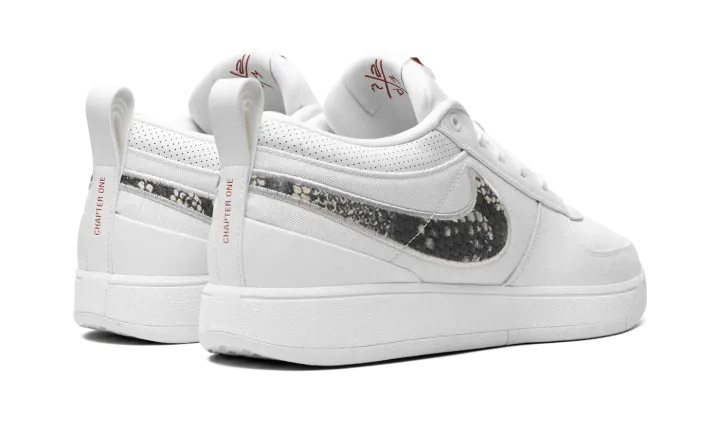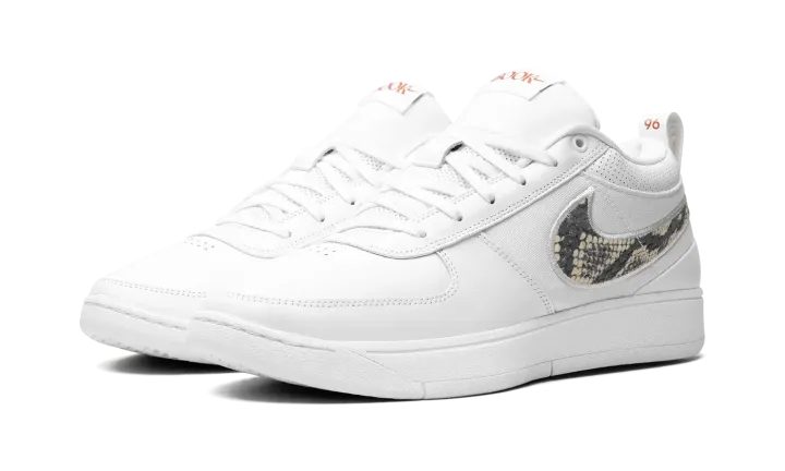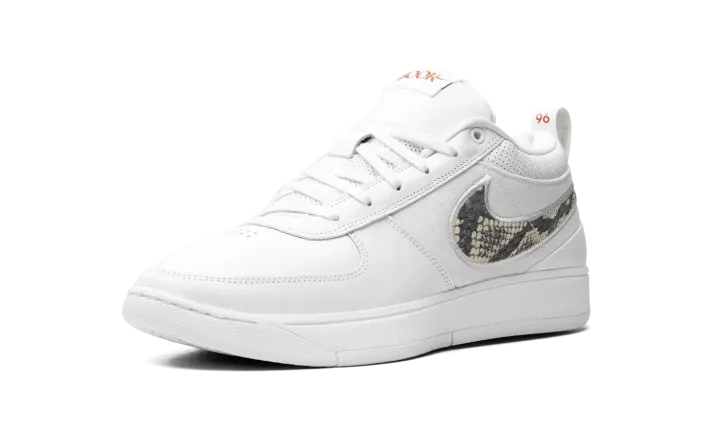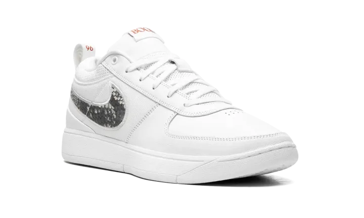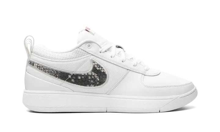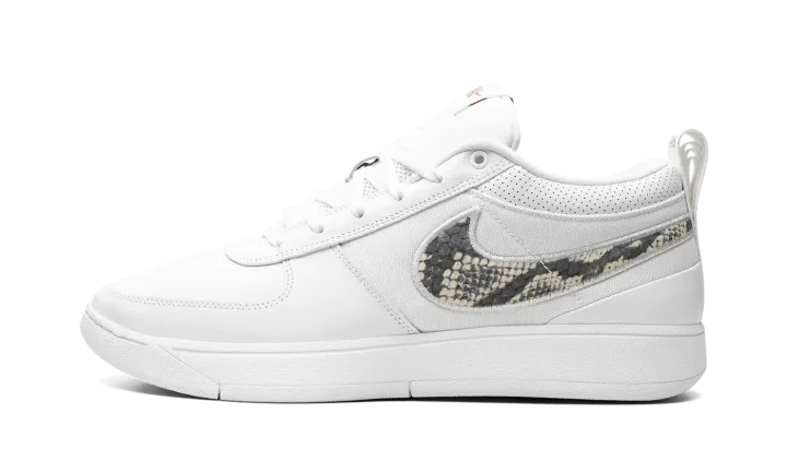 The Nike Book 1 "Rattlesnake" is a colorway of Devin Booker's first signature shoe with Nike Basketball inspired by the basketball star's reptile encounter on a hike. The "Rattlesnake" theme is derived from a snake sighting during Booker's hike with his dog Haven one summer. As for the design more specifically, the upper has a White leather and canvas construction with faux snakeskin Swoosh logos inspired by Booker's snake encounter. "Book" branding appears on the tongue tag, while "Chapter One" and "'96" logos can be found on the outside and inside of the heel pull tab, respectively. Release date: May 11, 2024