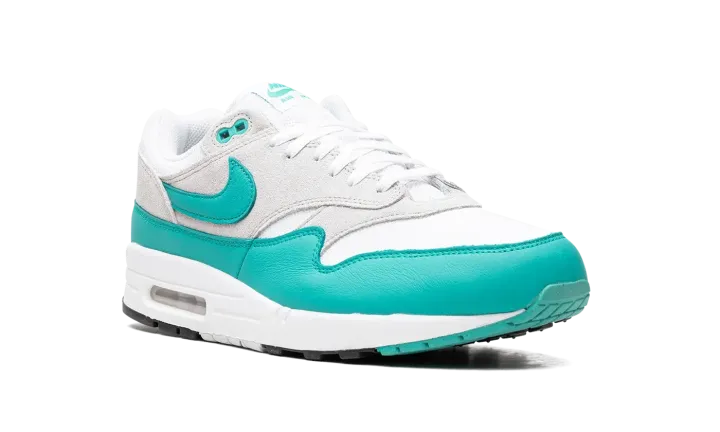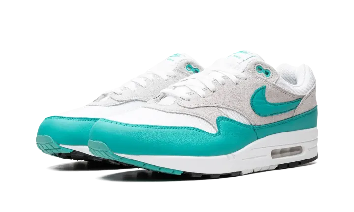 The Nike Air Max 1 "Clear Jade" is a summertime-ready colorway of the retro running shoe. The Air Max 1 "Clear Jade" features a fresh design that lends itself to casual wear in any season, but particularly during the warmer months. The shoe features a white mesh upper with light grey suede overlays. A Clear Jade leather mudguard matches the same hue of the leather Swoosh that appears on the sides, the "Nike Air" branding embroidered on the heel, and the "Nike Air Max 1" logo printed on the tongue tag. A clear Air bubble in the heel of the white foam midsole finishes off the look. Release date: July 21, 2023