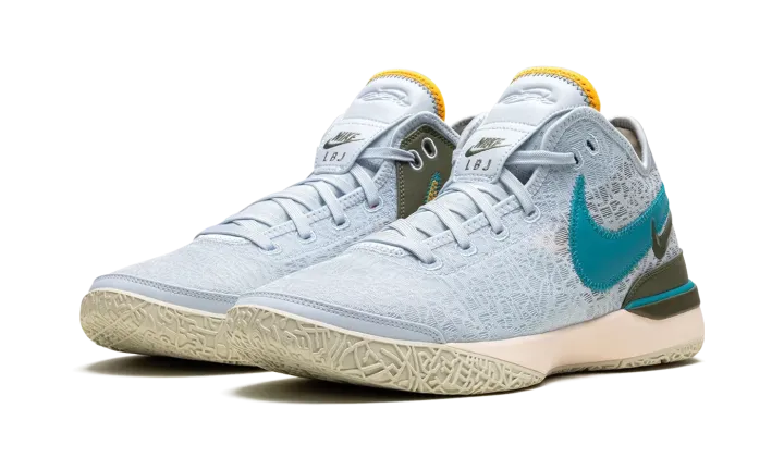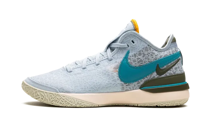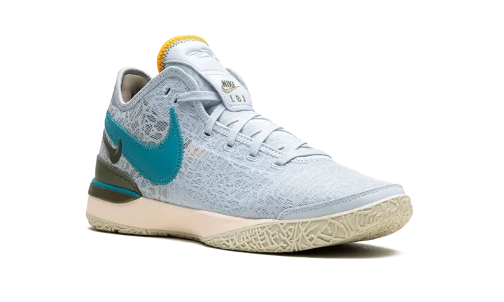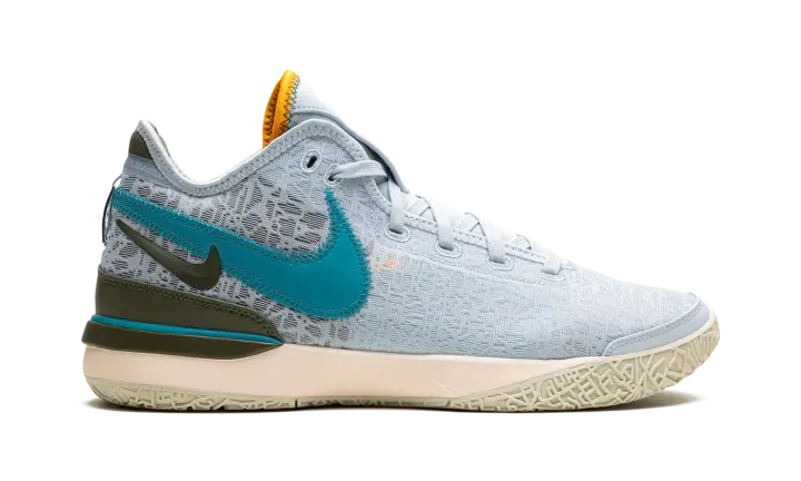 The Nike Zoom LeBron NXXT Gen "Blue Tint" is an alternate version of LeBron James's twentieth signature shoe in a summer-friendly colorway. The "Blue Tint" features a light blue mesh construction with layered teal and olive green Swooshes on the lateral side and an orange Swoosh on the olive green overlay on the medial side. More olive green detailing is featured on the mudguard on the heel and on the midsole. A full-length Air Zoom cushioning unit in the midsole gives the shoe a comfortable ride. Release date: June 21, 2023