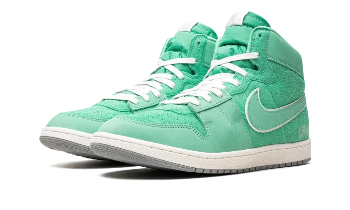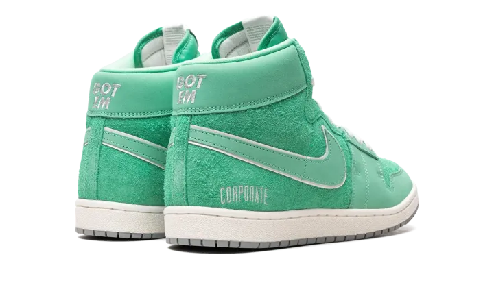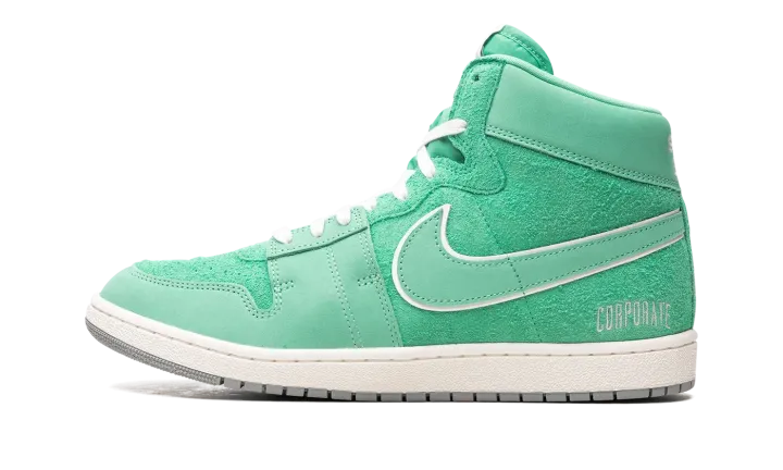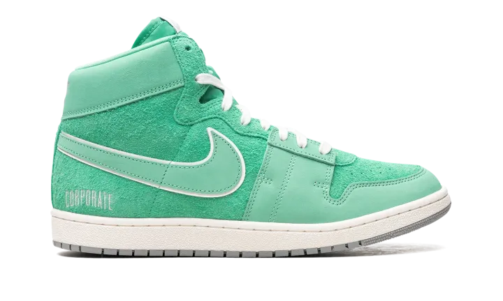 The Corporate x Jordan Air Ship "Light Menta" is a collaboration by the sneaker retailer and Jordan Brand on an eye-catching colorway of the retro basketball shoe. Founded by Matt Tomamichel, Corporate is a popular Cincinnati, Ohio based sneaker boutique that also runs a non-profit organization called Bigger Than Sneakers that aims to assist teens in finding their path in life. As for the shoe at hand, the upper features Light Menta suede construction with tonal overlays on the forefoot, toe cap, and collar. A Light Menta-colored leather Swoosh is seen on either side. Classic "Nike Air" branding is found on the tongue tag while white laces offset the upper's predominantly teal-colored appearance. Release date: September 8, 2023