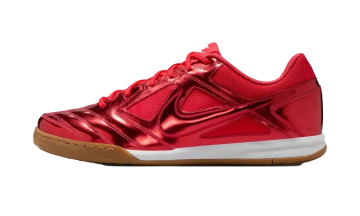 The Nike Gato LV8, style code IB3566-600, takes the silhouette of an iconic indoor soccer (Futsal) shoe and updates it with an elevated, metallic aesthetic for the streets. This edition is characterized by its bold, vibrant colorway.