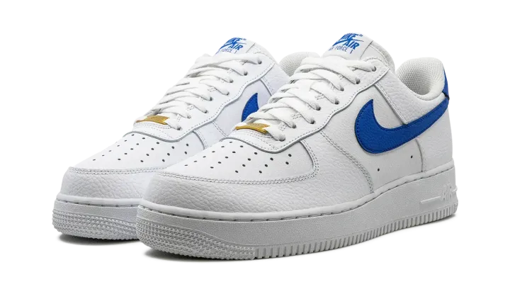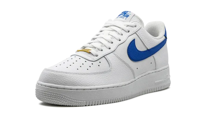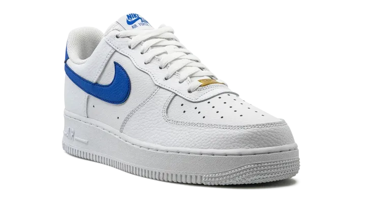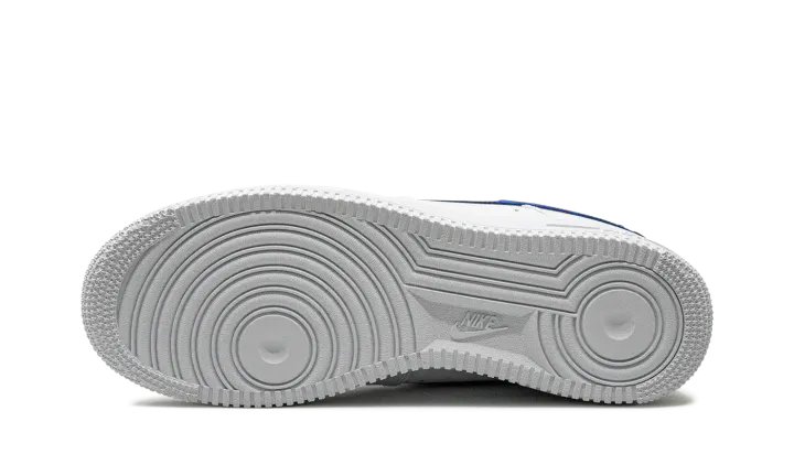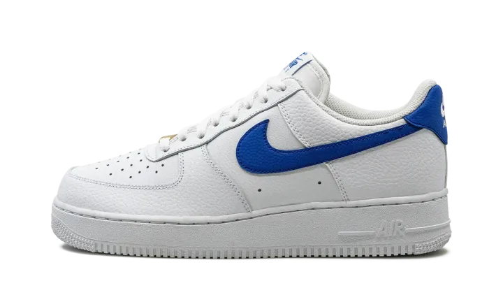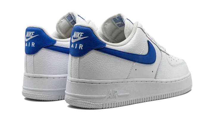 The Nike Air Force 1 Low "White/Game Royal" is a clean colorway of the retro basketball sneaker with a two-tone, white-and-blue design. The colorway features a white leather construction with tonal pebbled leather overlays and a Game Royal pebbled leather Swoosh. More Game Royal leather can be found on the heel tab with "Nike Air" branding and on the "Air Force 1" logo on the tongue tag. A white rubber midsole with tonal "Air" detailing on the lateral side completes the look.