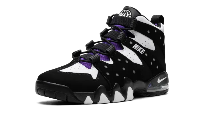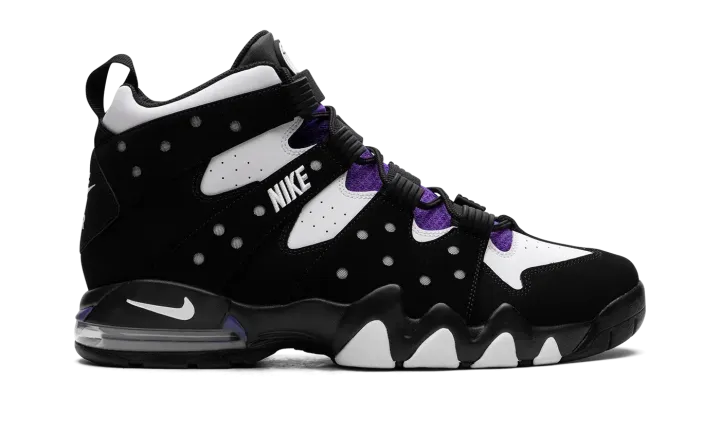 The Nike Air Max CB '94 OG "Black/White/Purple" is the 2023 retro release of the classic Charles Barkley signature shoe. One of the most beloved sneakers in "Sir Charles's" signature basketball shoe line, the CB '94 was worn by Barkely during the 1993-94 NBA season with the Phoenix Suns. This black synthetic nubuck, white leather, and purple-accented colorway is by far the most celebrated look for the sneaker. Designed by Tinker Hatfield, the shoe is said to be inspired by a straight jacket, with a quick lace system allowing for a snug fit. The design also features Air Max 2 cushioning in the heel.