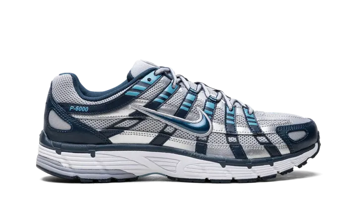 The Nike P-6000 channels the spirit of the early 2000s, blending nostalgic track aesthetics with modern street style. This shoe is a mash-up design, drawing inspiration from various models in the Pegasus line, including the 2006 Air Pegasus. The "Armory Navy / Flat Silver" colorway grounds the tech-runner look in classic, wearable colors.