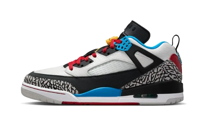 Presenting the Jordan Spiz'ike Low SE "Bordeaux", a special edition low-top sneaker that expertly blends design elements from several iconic Air Jordan models, paying tribute to director Spike Lee. Dressed in the highly sought-after "Bordeaux" colorway, this shoe features the signature speckled elephant print overlays on the heel and toe, a prominent feature borrowed from the Air Jordan 3. The sneaker is constructed from a mix of durable leather and synthetic materials, offering both a premium feel and lasting comfort. A visible Air-Sole unit provides classic cushioning underfoot, while the deep "Bordeaux" hue provides a rich, contrasting accent against the primary base. It's a striking hybrid silhouette built for the modern sneaker enthusiast.