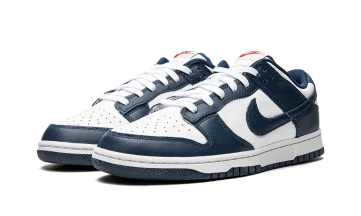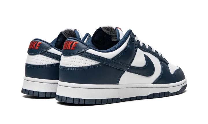 The Nike Dunk Low "USA" is a May 2022 release of the patriotic sneaker in a classic colorway and all-leather construction. The "USA" celebrates major holidays that are observed by the US during the spring and summer. This design features Valerian Blue overlays that are contrasted with a white leather base on the mid-panel, toe, and heel. Blue Swooshes cover the mid-panels and pops of red appear on the tongue and heel logo to complete the design. Release Date: June 16, 2022