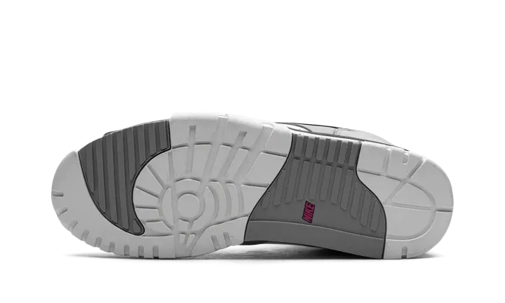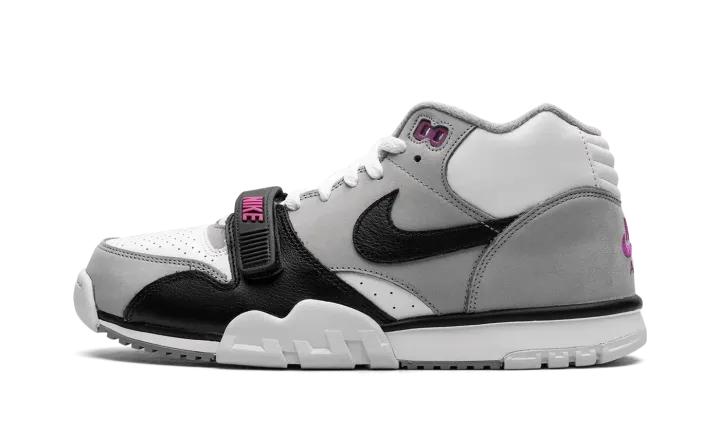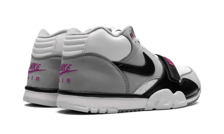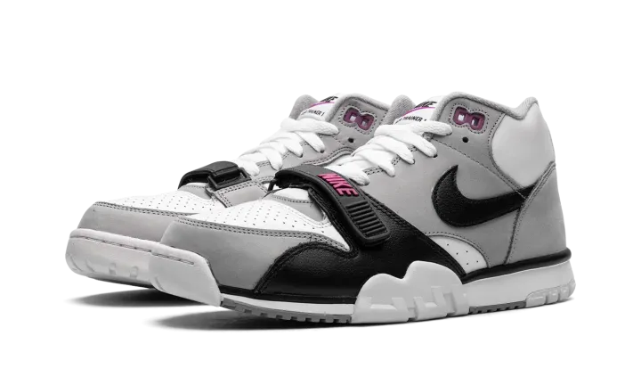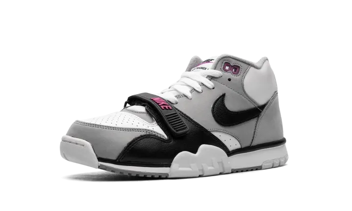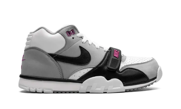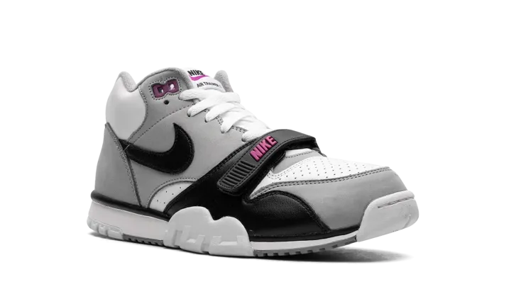 The Nike Air Trainer 1 "Hyper Violet" is an easy-wearing colorway of the retro cross-training sneaker. The Air Trainer 1 in "Hyper Violet" features a white leather base with Medium Grey nubuck overlays. A black leather Swoosh can be seen on the sides and classic "Nike Air" branding appears on the heel. The black leather midfoot strap dons Hyper Violet "Nike" branding. Underfoot, the white midsole and outsole complete the look. Release date: June 24, 2023