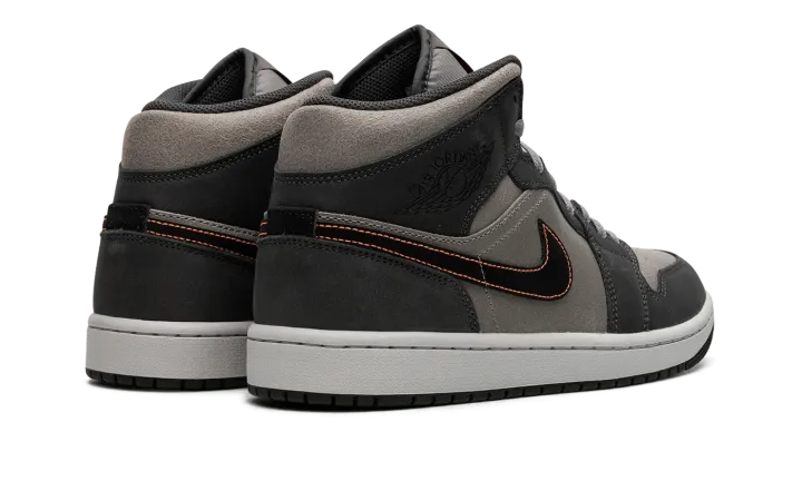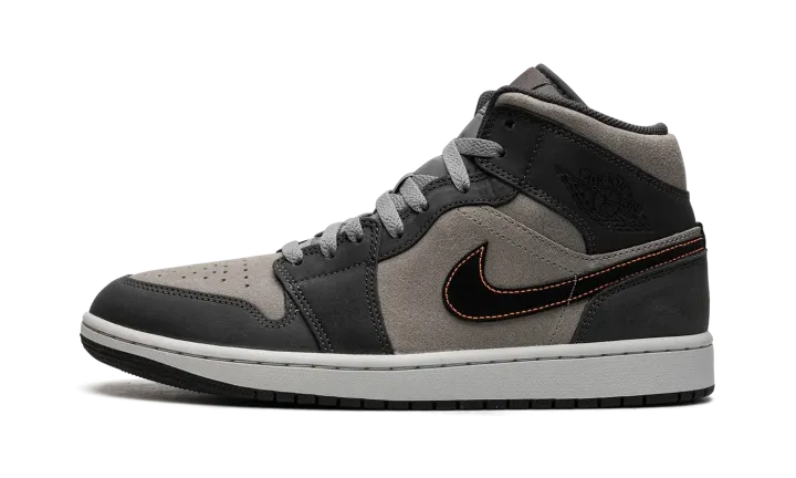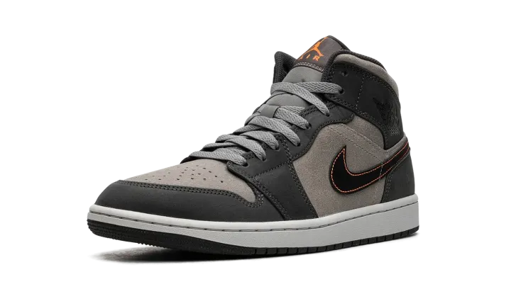 The Air Jordan 1 Mid SE "Night Stadium" is a colorway of the alternate mid-top silhouette of Michael Jordan's first signature shoe inspired by Halloween. While no Halloween branding or decorations are seen on the "Night Stadium," the sneaker nonetheless sources inspiration from the spooky holiday with its black, grey, and orange color scheme—the colors most commonly associated with Halloween. The base is designed in grey suede while the overlays are seen in a darker shade of grey nubuck. A black leather Swoosh with Total Orange contrast stitching appears on both sides. Black "Wings" branding is found on the collar while an orange Jumpman is paired with an "Air" logo on the tongue tag. The white midsole and grey outsole complete the look. Release date: October 1, 2023