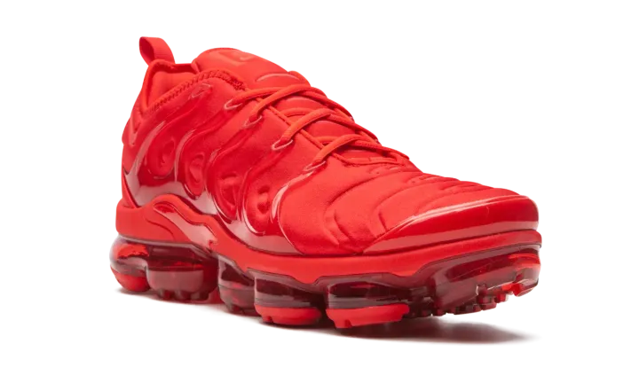 The Nike Air VaporMax Plus "Triple Red" offers fans of bold sneakers the ideal pop of color to level up casual ensembles. The modern Nike shoe showcases a hybrid of Nike technology with the floating cage, padded upper and heel logo of the 1998 Air Max Plus and the revolutionary VaporMax Air technology. This version of the Nike Air VaporMax Plus sneaker makes a monochromatic statement with just one shade of red draped over its entirety.