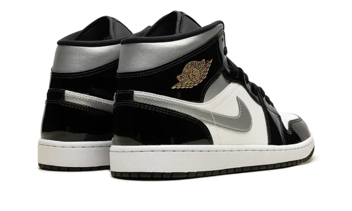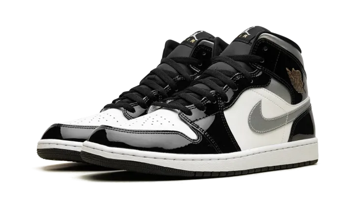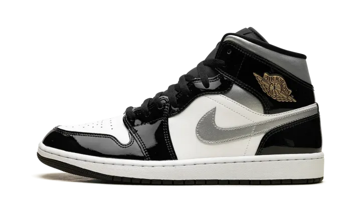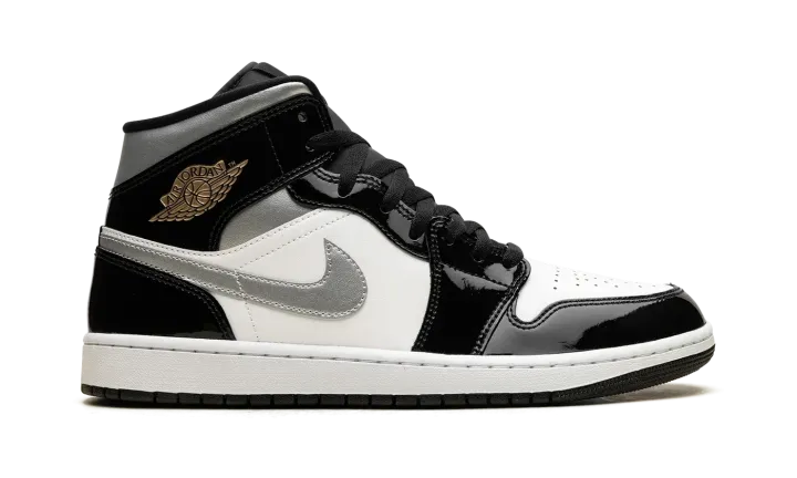 Elevate your style with the Jordan 1 Mid SE "Black Patent" HV0789 010. This sleek sneaker combines classic design with a modern patent leather finish, offering a sophisticated and eye-catching look.