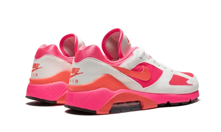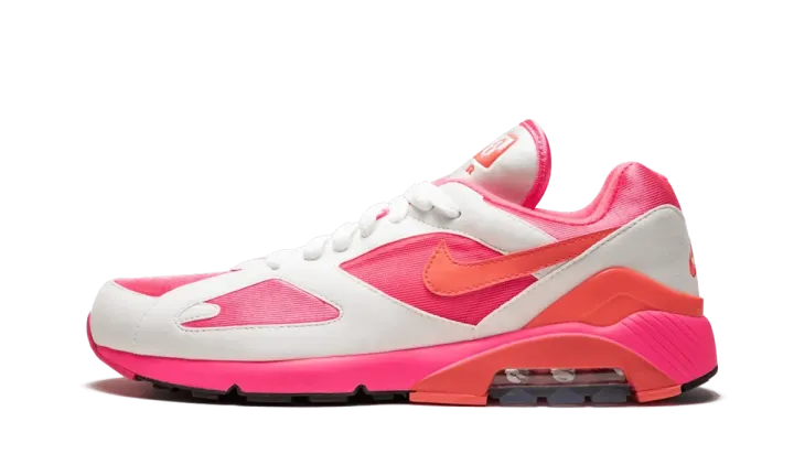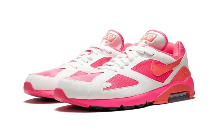 Perhaps their most unusual and random collaboration with Nike yet, in early 2018 COMME des Garçons dropped a vibrant trio of bright pink accented colorways of the Air 180. Loved by hardcore Air Max fans but often overlooked by the masses, the Air 180 from 1991 was an interesting choice for CDG, but nobody's complaining when the results look like this. Here we have the white based version of the set, featuring the same Laser Pink and Solar Red accents of all three colorways, but with a white felt upper. The CDG x Nike Air 180 released with no announcement only in-store at COMME des Garçons in limited quantities, leaving the mysterious collab a sought-after item for high fashion and Air Max fans alike.
