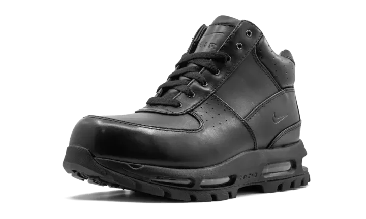 The Nike Air Max Goadome is the perfect footwear choice for the harsh winter months. Part of the Nike All Conditions Gear (ACG) sub-label, the hiking boot is composed of a waterproof black leather upper and sits atop a rugged rubber traction pattern designed with outdoor use in mind. Minimal branding can be spotted on each lateral side in the form of embossed mini Swooshes. A full-length Air Max unit delivers superior cushioning, while a gusseted tongue guarantees maximum protection from the elements.