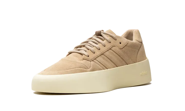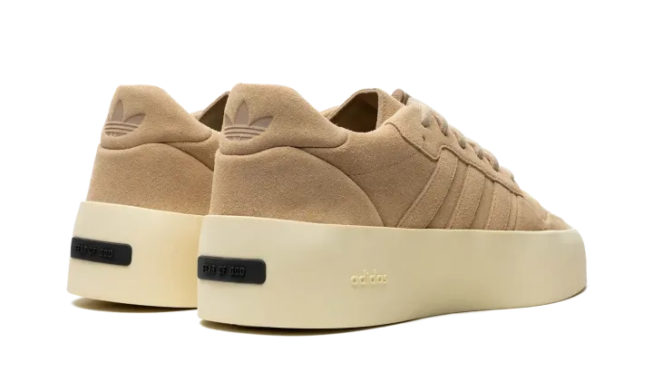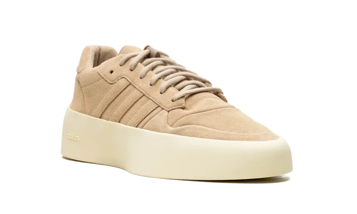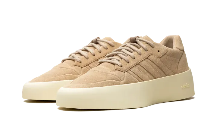 The adidas Fear of God Athletics '86 Low "Clay" is a retro basketball shoe inspired silhouette from Jerry Lorenzo's clothing brand's collaboration with adidas. Inspired by the adidas Rivalry '86 Low, the adidas Fear of God Athletics '86 Low has an old school yet modern look. On the "Clay" colorway, the shoe features a monochromatic beige suede construction. Tonal Three Stripes branding appears on the sides, while a debossed adidas Trefoil logo can be seen on the heel tab. Underfoot, the thick, cream-colored rubber midsole features a black bar on the heel with an embossed "Fear of God" logo. Release date: December 3, 2023