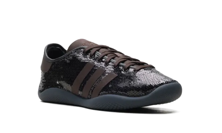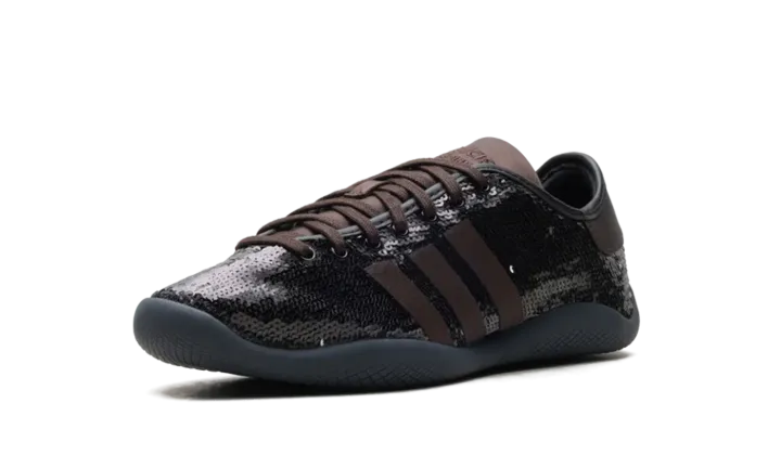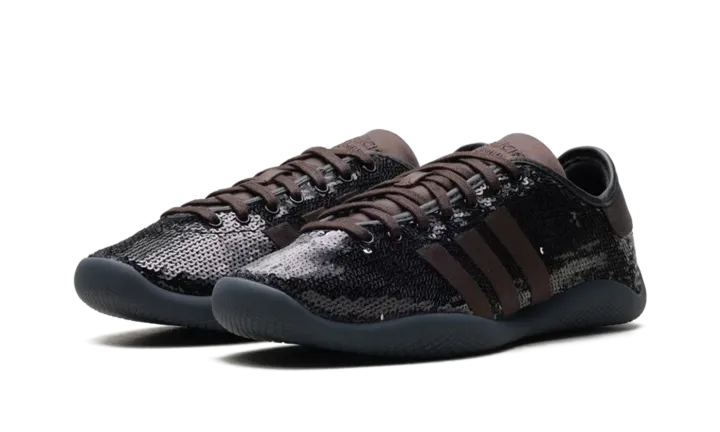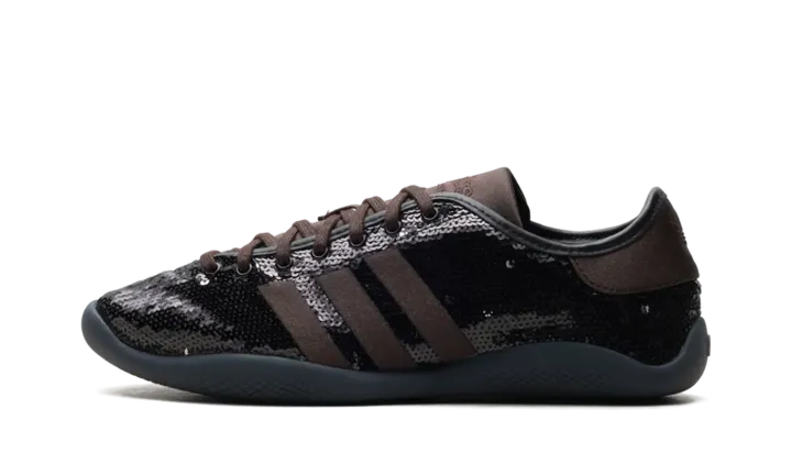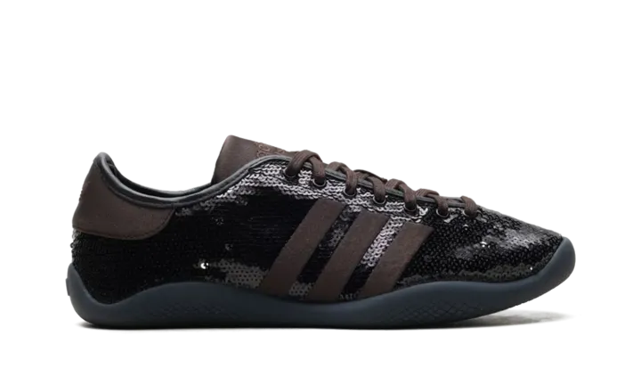 Step into elevated style with the magnificent ADIDAS Karintha "Wales Bonner - Black Dark Brown Sequin." This stunning collaboration transforms a classic silhouette into a dazzling, luxury statement piece. The upper is completely covered in shimmering black and dark brown sequins, offering an unmatched textural depth and sophisticated shine. Merging the sportswear heritage of Adidas with Wales Bonner's distinct, high-fashion aesthetic, this exclusive shoe is perfect for the modern enthusiast who wants a bold look. Secure this unique piece to add instant glamour to your rotation.