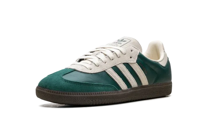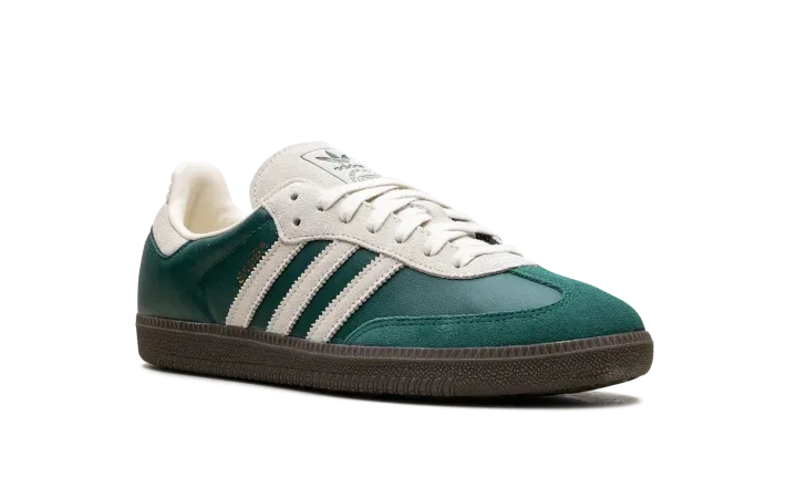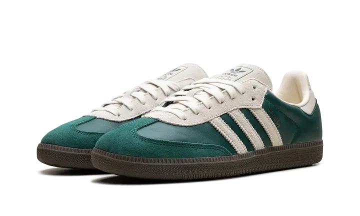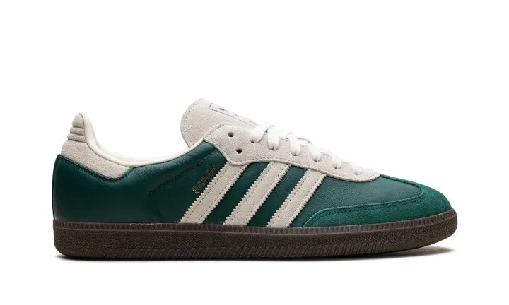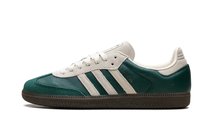 Step into a clean and classic look with the Adidas Samba OG "Collegiate Green / Cream White". This celebrated silhouette features a soft Collegiate Green suede upper complemented by creamy white leather accents. Enjoy the comfortable fit and timeless appeal, blending a retro aesthetic with modern style for a versatile look that's perfect for any occasion.