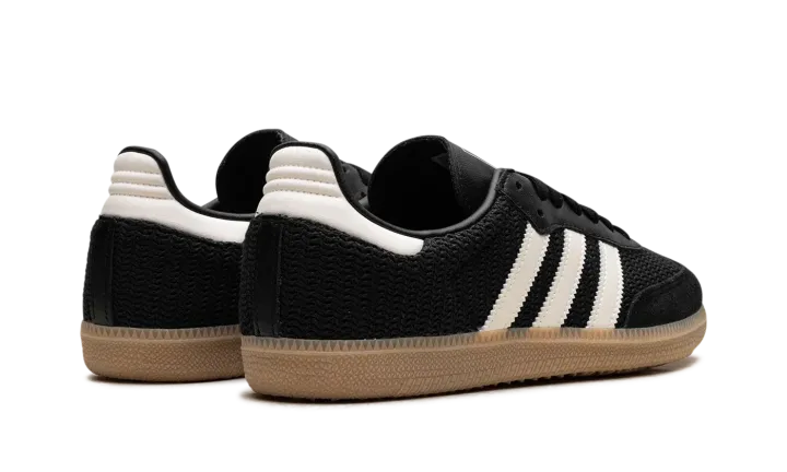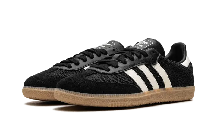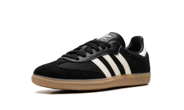 Step into a clean and classic look with the Adidas Samba OG "Core Black / Cream White". This celebrated silhouette features a rich Core Black upper complemented by creamy Cream White accents and a classic gum sole. Enjoy the comfortable fit and timeless appeal, blending a retro aesthetic with modern style for a versatile look that's perfect for any occasion.