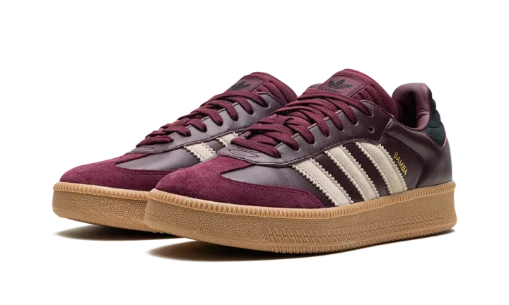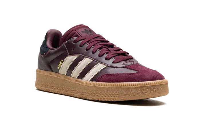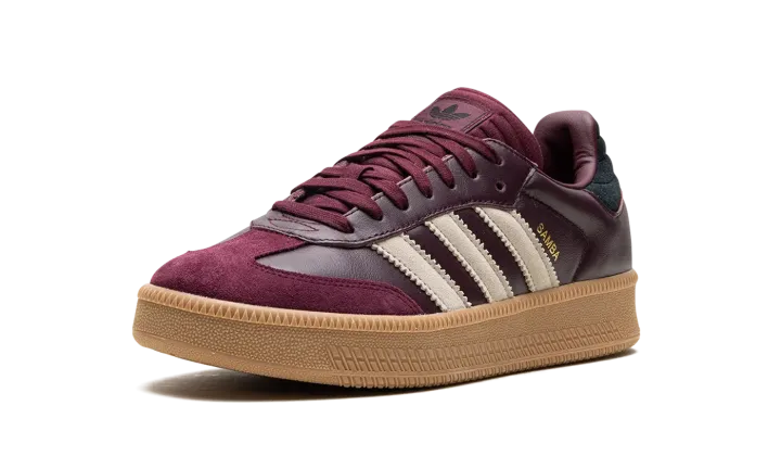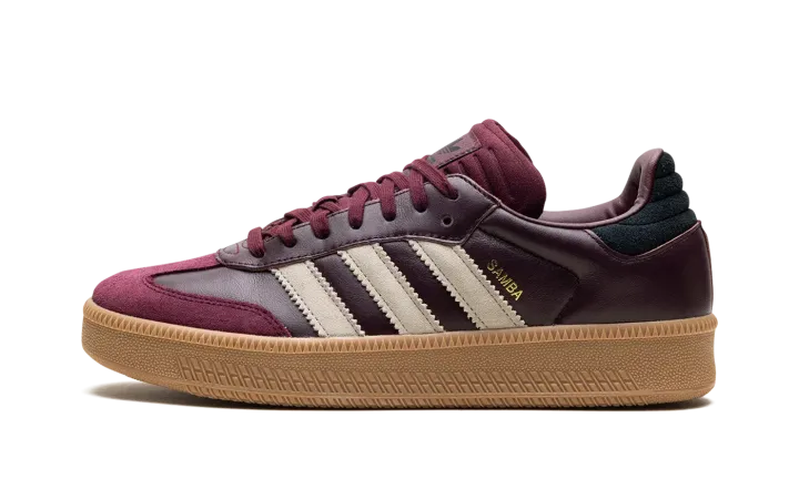 Prepare to elevate your street style with the Adidas Samba XLG "Maroon" sneaker! This amplified take on the legendary football trainer features a bold, chunky silhouette for a modern edge. The rich maroon leather upper, combined with classic suede overlays and the iconic gum rubber sole, gives this men's shoe an authentic, eye-catching look. Enjoy all-day comfort thanks to the EVA drop-in midsole and padded tongue.