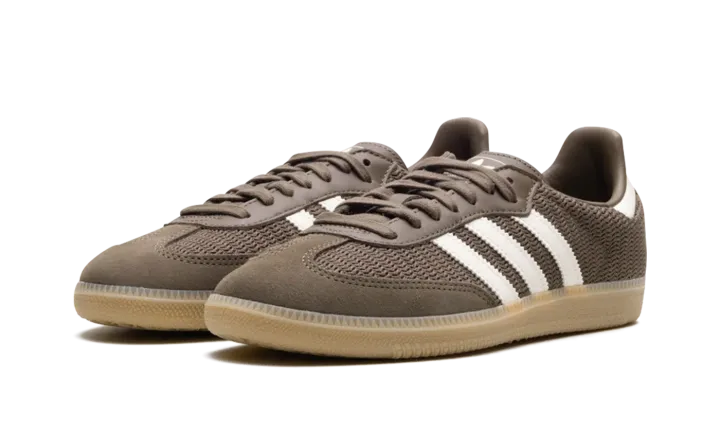 Step into natural elegance with the Adidas Samba OG "Earth Strata / Wonder White." This classic silhouette features a rich Earth Strata brown upper complemented by crisp Wonder White accents. Experience comfortable wear and a versatile aesthetic, perfect for everyday style.