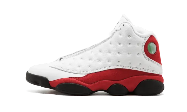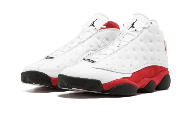 The Air Jordan 13 "Chicago" is one of the five original colorways of the model from 1998. Sometimes also referred to by the nickname "Cherry," the shoe sports a Chicago Bulls-inspired colorway in white and red with black accents. The upper is constructed with premium white tumbled leather and red suede on the side panel, heel, and midsole. A black outsole completes the shoe, along with the iconic Jumpman hologram logo on the heel. This colorway was worn by Michael Jordan for much of the 1997-98 NBA season, which was his last season with the Chicago Bulls. This is the 2017 retro release of the "Chicago" Jordan 13.